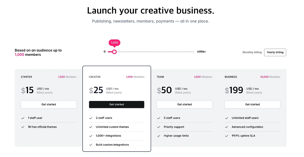 고스트는 현재 월/연 단위 구독제로 수익을 내고 있는데요, 고스트의 수익금은 고스란히 고스트에 재투자되는 형태죠.