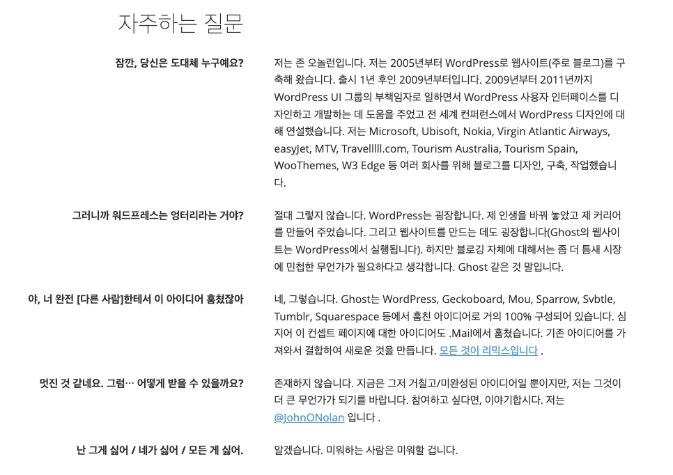 Ghost 이전, 존은 블로그 플랫폼 워드프레스(WordPress) 전문가로 활약했어요.
