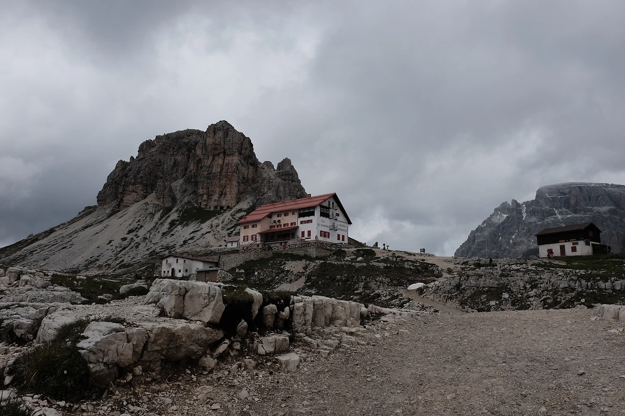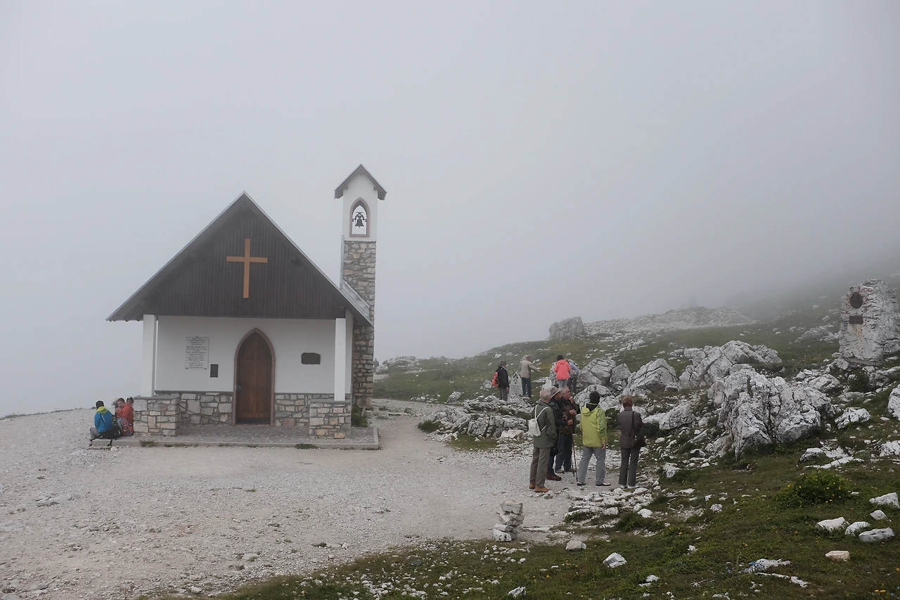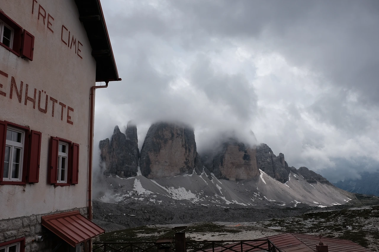 몇 분 걸었을까, 1차 세계대전 당시 희생자들을 기리는 작은 교회를 지난다. 이 거친 지역을 장악하기 위해 오스트리아와 이탈리아의 산악부대가 목숨을 잃은 그 길, 구름을 야속해하며 걷는다. 라바레도 산장Rifugio Lavaredo을 지나 트레치메 디 라바레도 옆을 넘는 고개에는 지난겨울에 내렸을 눈이 남아있다.