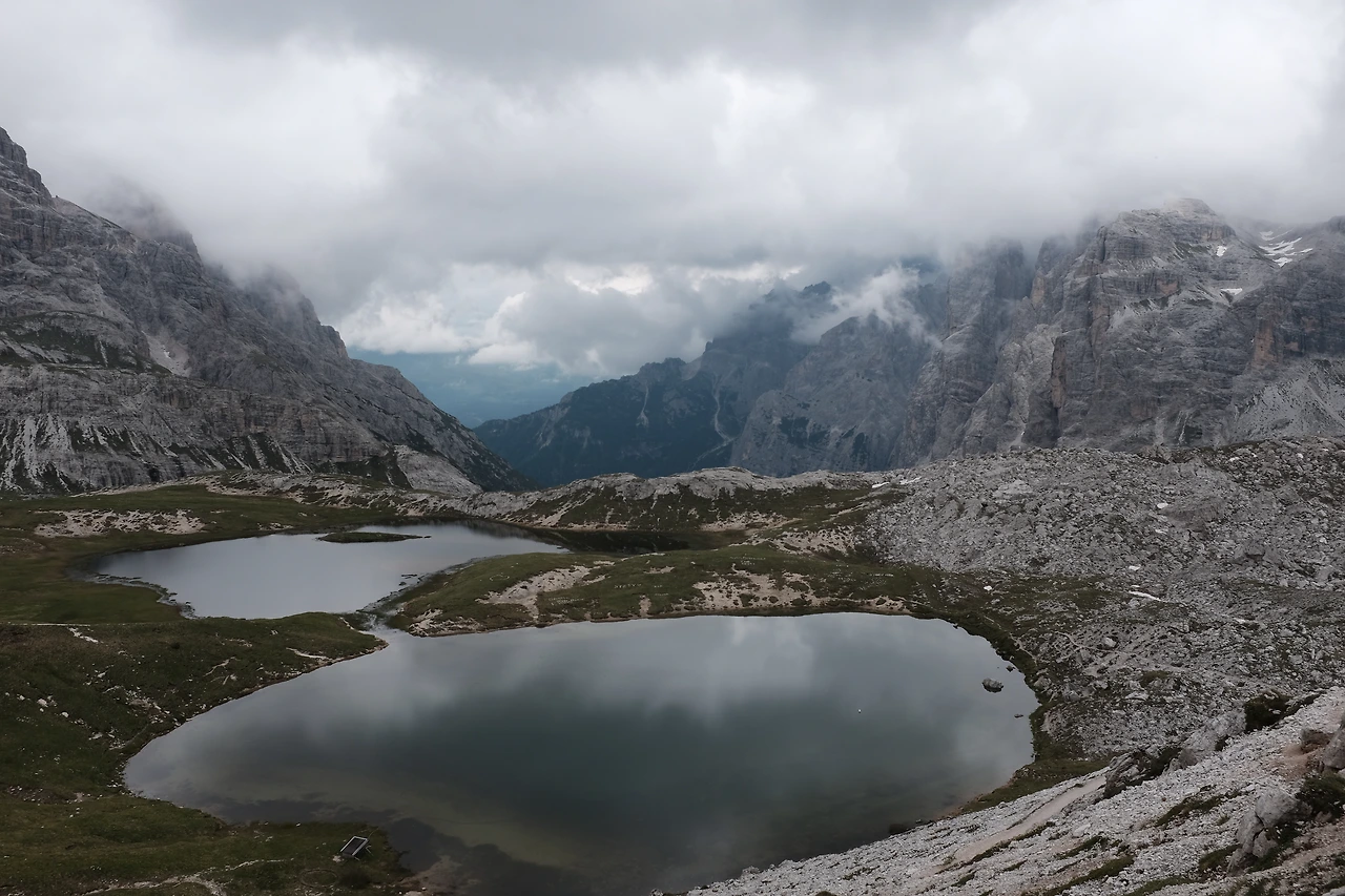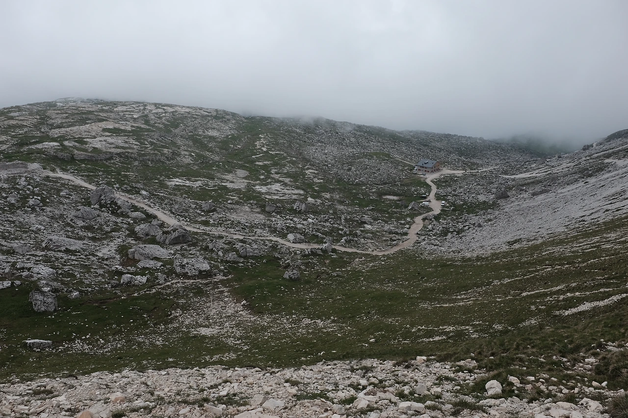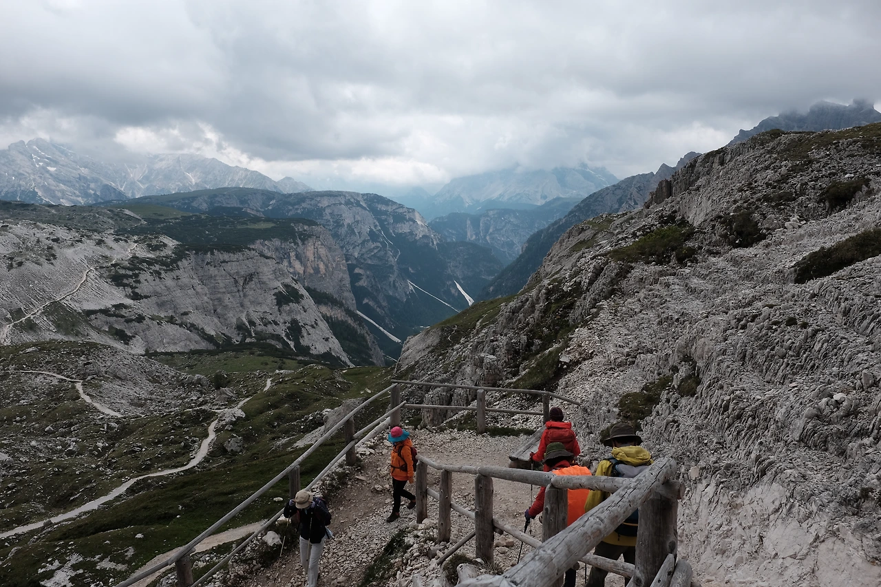 아론조 산장에서 로카텔리 산장Rifugio A. Locatelli까지는 차가 다닐 수 있을 정도로 넓고 평탄한 길이 놓여 있다. 비가 그쳐 좋아했던 마음은 온데간데 없고 구름이 잔뜩 끼어 조망이 좋지 않은 게, 사람 마음 참 간사하다.