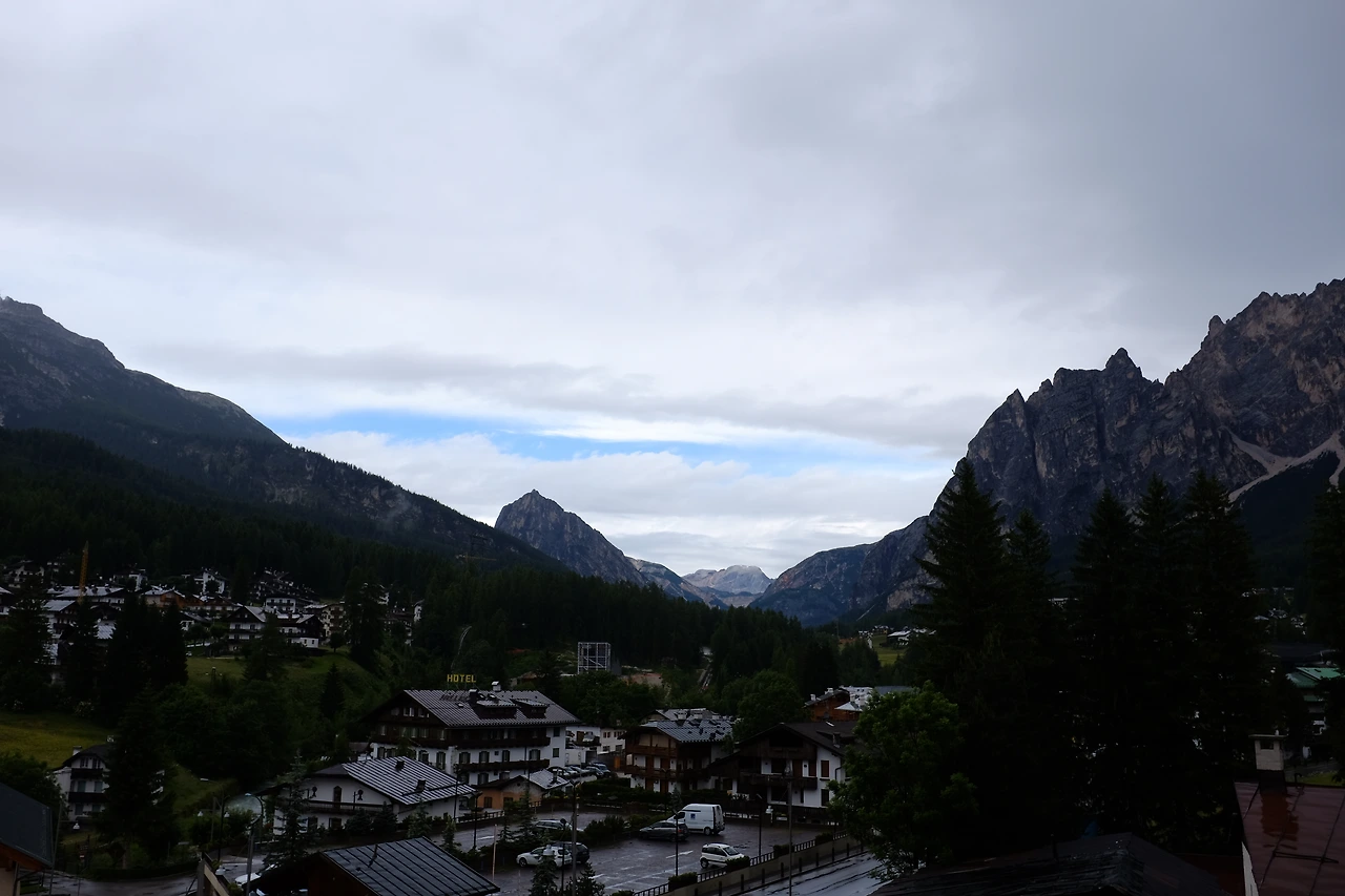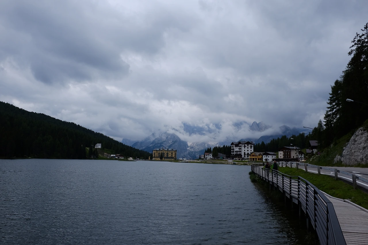 이탈리아로 떠나기 일주일 전부터 현지 날씨를 보며 안타까워했는데, 역시나 트레킹 첫날 새벽 비가 내린다. 트레킹을 할 수 있을까 걱정하며 아침식사를 하고 비옷을 입는데 다행히도 비가 그친다. 비가 내려 구름이 낮게 깔린 해발 1,000m의 작은 도시는 상쾌하다. 트레치메 디 라바레도Tre Cime di Lavaredo는 구름에 가려 볼 수 없을 터, 그래도 먼 곳 와서 첫날 트레킹을 할 수 있어 발걸음이 가볍다.