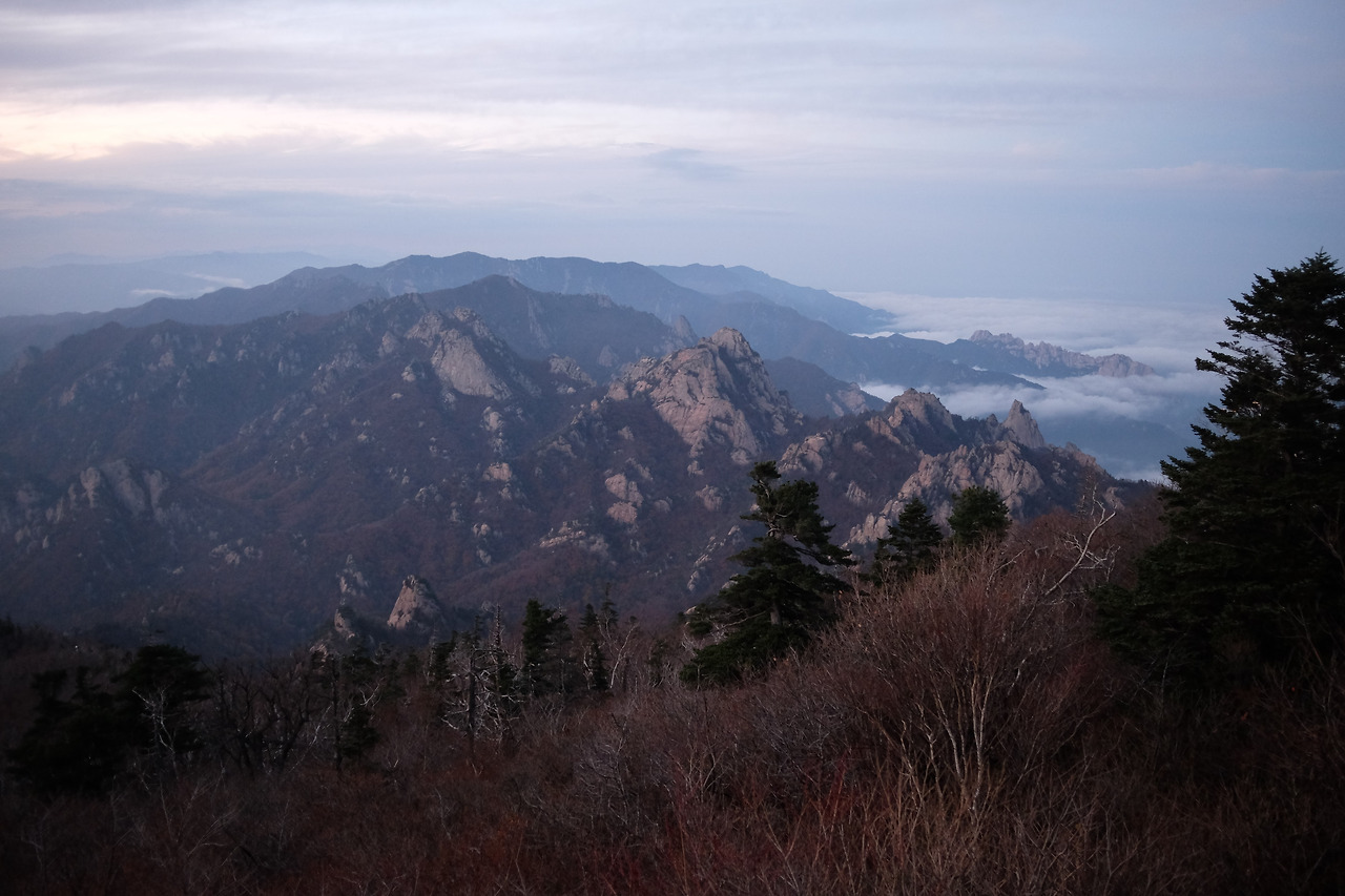 대청봉에서 일출을 보려면 새벽 일찍 일어나 소청대피소를 떠나야 한다. 늦잠을 잤거나 늑장을 부리다 늦었더라도 좌절할 필요없다. 일찍 일어났을지라도 굳이 대청봉에 가지 않고 한번쯤은 소청대피소에서 아침식사를 즐기길 권한다. 아침 햇살에 내설악의 암봉이 선홍색으로 불(!)드는 장관을 보는 건 소청대피소라 가능하다. 남설악의 넘실대는 운해를 보지 못해도, 대청봉의 일출을 맞이하지 못해도 괜찮다. 아침의 내설악은 어제 저녁 보았던 것과는 다른 매력에 빠지기에 충분하다.