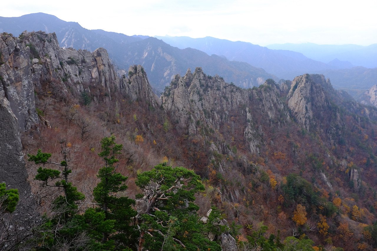 봉정암의 사리탑에서 보는 풍광은 아이맥스다. 왼편의 용아장성과 오른편의 공룡능선이 눈높이에서 시작해 내설악을 가른다. 그 사이로 수렴동, 가야동 계곡이 깊게 파여 있고, 그 끝자락에 백담사가 있다. 용아장성 너머 서북능선이 원근감을 더하며 든든하게 버티고 있다. 귀때기청봉을 위시한 서북능선은 설악에도 굵은 능선이 있음을 입증한다. 백담사에서 설악산을 오른다면 봉정암 사리탑에서 한참을 머물러야 한다. 그래야 한다. 이곳에 서면 그럴 수밖에 없다.