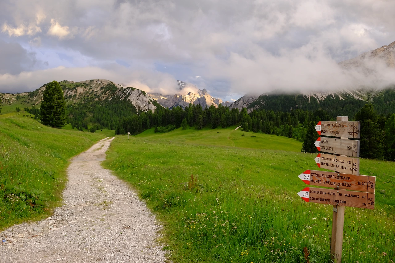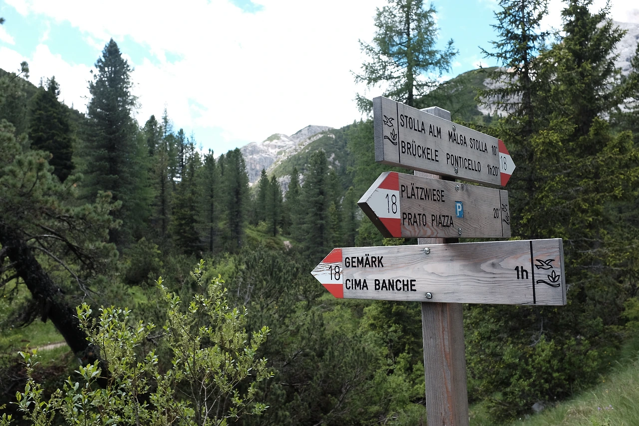 이곳 트레일의 길 안내 표지판은 독일어와 이탈리아어를 병기하며, 오스트리아 국기 문양을 사용한다. 티롤 지역에 속하기 때문인 듯하다. 표지판에는 소요 시간도 적혀 있는데, 이를 보고 일정을 세워서는 안 된다. 표지판에 적힌 시간은 산악구조대가 이동하는 데 걸리는 시간이다. 그러니까 표지판 시간에 1.5배 정도로 계산해야 한다.
