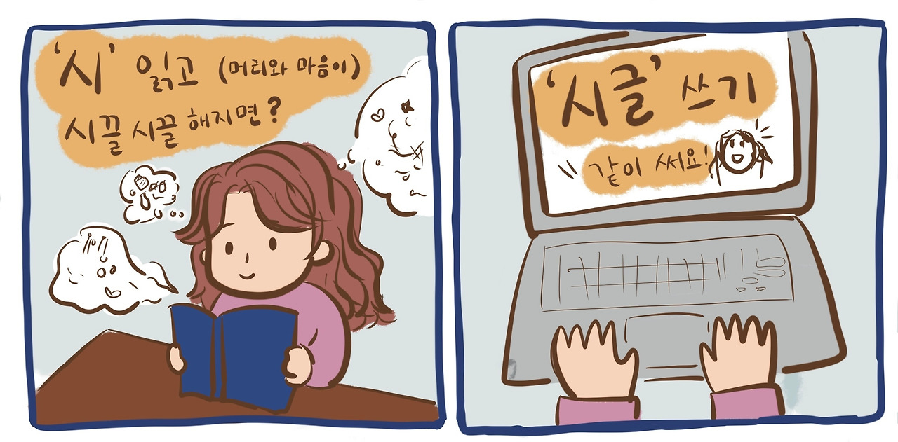 때로는 비평문의 형태, 혹은 단순 시 해석글이 될 수도 있고, 수필이 되거나, 지어낸 짧은 이야기가 될 수도 있어요. 시에서 영감을 받은 또 다른 시가 탄생할지도 모르겠네요. 혹은 시에 대해 가볍게 이야기하는 만화가 될지도 모르고요.