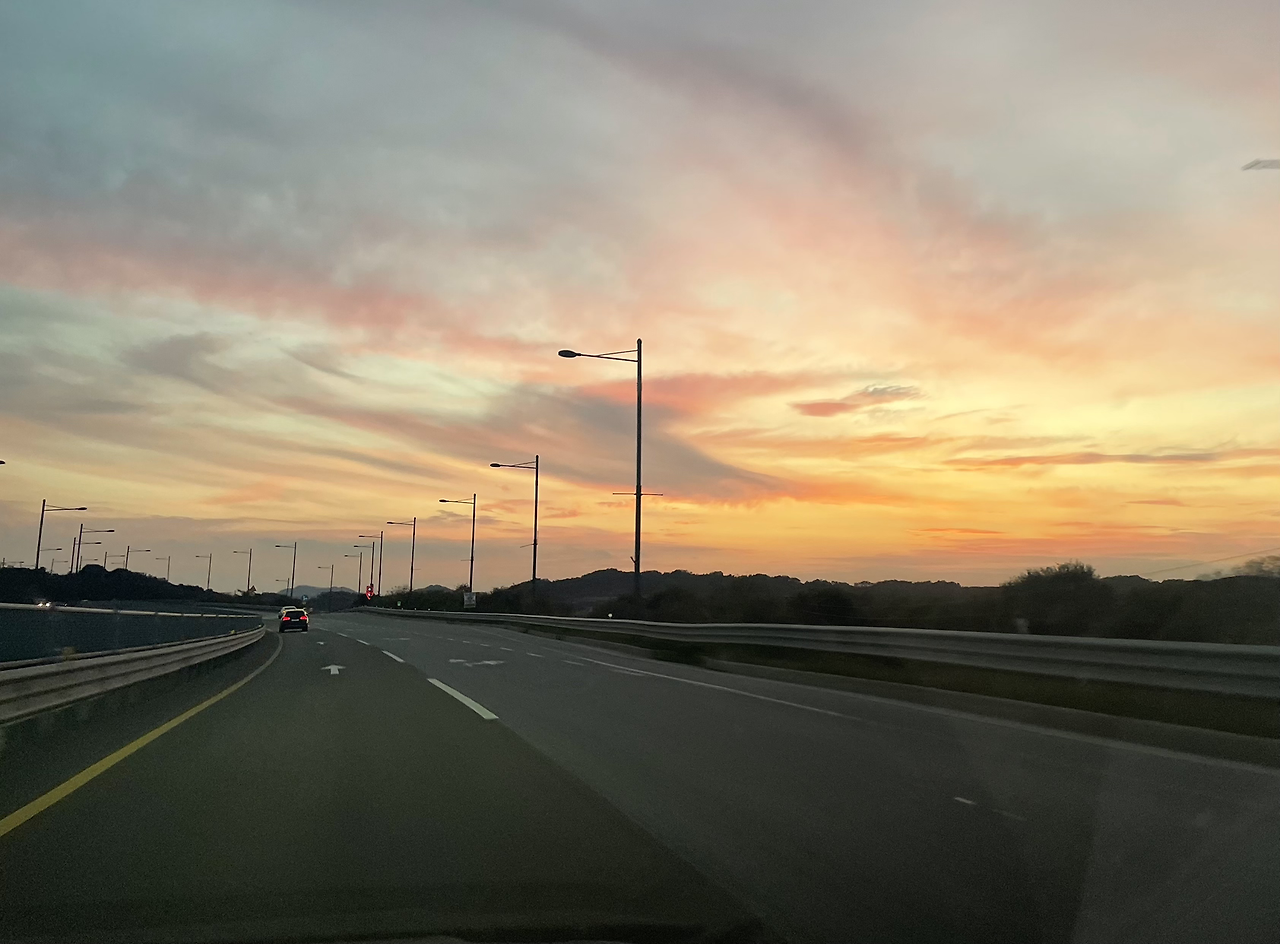 - 노을이 예쁘네.