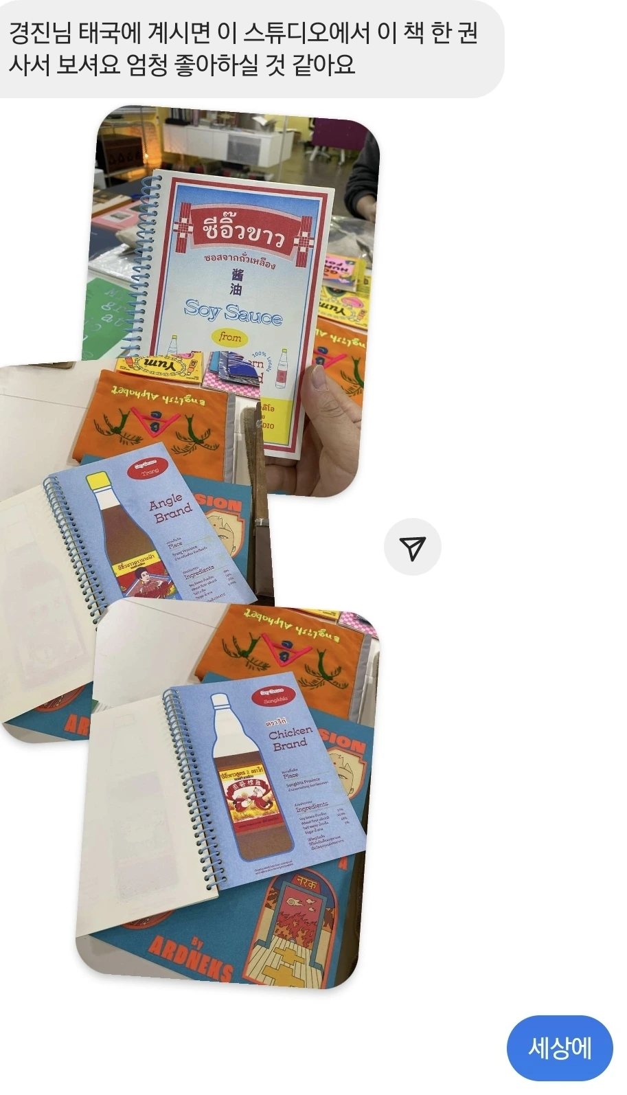 태국에 도착한 지 얼마 되지 않은 어느 날, “경진님, 태국에 계시면 이 스튜디오에서 이 책 한 권 사서 한번 보셔요. 엄청 좋아하실 것 같아요.”라는 문장과 함께 사진 몇 장이 날아들었다. 총천연색 표지에 적힌 태국어 제목 아래 적힌 영문 제목은 “Soy Sauce from The Southern of Thailand”. 무려 “태국 남부의 간장”!! 평소에도 소스의 역사와 라벨의 모양새에 관심이 상당히 많기에 이 책을 보자마자 꼭 읽고 싶어졌다. 이 책을 펴낸 곳은 치앙마이에 있는 ‘Line Per Ink Studio’라는 곳이었다. 책의 생김새만 딱 봐도 일반 서점에서는 찾기 어렵게 생겨서 이 업체가 운영하는 서점이나 오프라인 샵이 있는지 정보를 샅샅이 뒤졌다. 어차피 치앙마이에 갈 예정이라 간 김에 매장에 들르면 되겠다고 생각했다. 근데 이게 웬걸 구글에 업체명을 검색하고, 구글 지도에도 따로 검색해 보고, 인스타그램에 있는 링크를 통해 업체 사이트에 들어가 봤는데도 오프라인 매장이 없었다! 책을 구할 수 있는 가장 쉬운 방법은 서점으로 가는 일인데, 서점이 없다니! ‘ Bangkokcitycity 방콕시티시티’라는 예술 서적을 판매하는 서점에도 갔었는데 이 책은 없다고 하더라. 일이 이렇게 되어 버린 이상 다른 방법을 찾아야 했고 나는 용기를 내어 “서점을 찾을 수 없다면 사무실에라도 찾아가!”기로 마음먹었다. 이렇게 열정을 보일 정도로 이 책이 궁금했고, 이 책을 만든 사람을 만날 수 있다면 더욱 좋을 것 같았다.