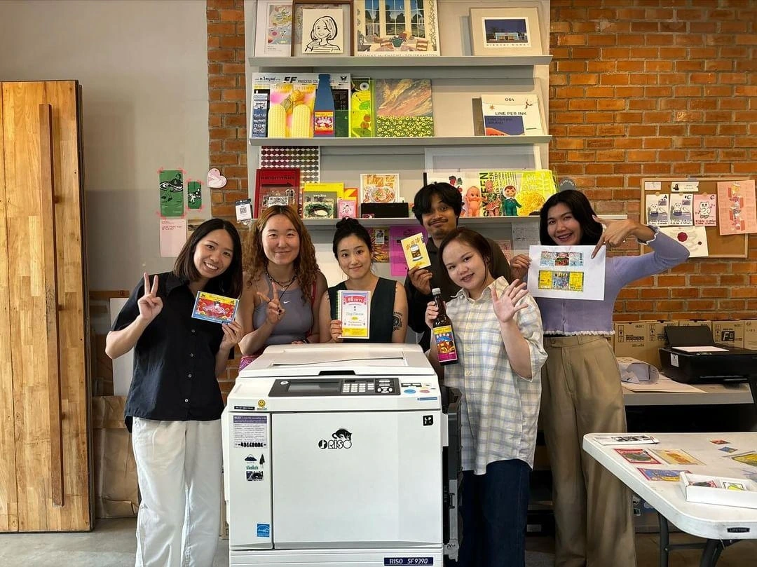 Line Per Ink Studio는 치앙마이에 있는 디자인 & 인쇄 전문 업체이다. 이곳에서 만든 책이 궁금해서 찾아간 거라 출판사일 줄 알았는데 아니었다. “이곳은 출판사도 아닌데, 왜 책을 만들었을까?”가 스튜디오에 방문하기 전에 생긴 큰 질문거리 중 하나였다. 이 질문에 대한 답변은 사무실에 들어선 지 얼마 되지 않아 바로 알 수 있었다. 이곳에서 일하는 분들은 전문적인 디자이너이자 인쇄 기술자들인데, 다양한 인쇄 기술을 바탕으로 감각적인 디자인 작업을 마구마구 실험하고 있었다. “Soy Sauce from The Southern of Thailand” 책도 이러한 실험 중 하나라고 할 수 있었다. 사무실 한쪽 벽면에 다양한 작업물이 전시되어 있는데, 인쇄 기술을 선보이기 위한 단순한 작업이 아닌 디자인과 기술을 한 번에 확인할 수 있는 작품을 볼 수 있다. Line Per Ink Studio에는 태국에 1대밖에 없는 레진 인쇄 기계도 있을 정도로 다양한 프린팅 기법을 시도할 수 있는 곳이다. 자유로운 시행착오가 이루어지는 공간인 만큼 질 높은 작업물이 산출되는 공간이라는 생각이 들었다.