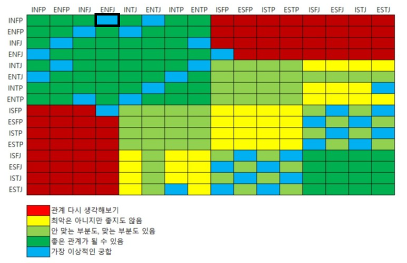 남자친구는 INFP, 나는 ENFJ로 우리는 MBTI 궁합 표에서 천생연분, 가장 잘 맞는 궁합을 자랑한다. 실로 그럴 것이 남자치구와는 서운하고 속상할 일이 별로 없고 온전히 그 사람 앞에서 솔직한 내 모습이 나온다.