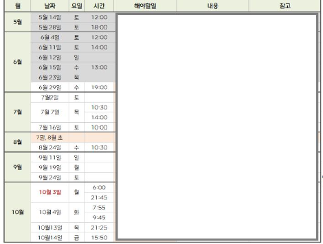 엑셀 파일 '일정관리' 시트 中