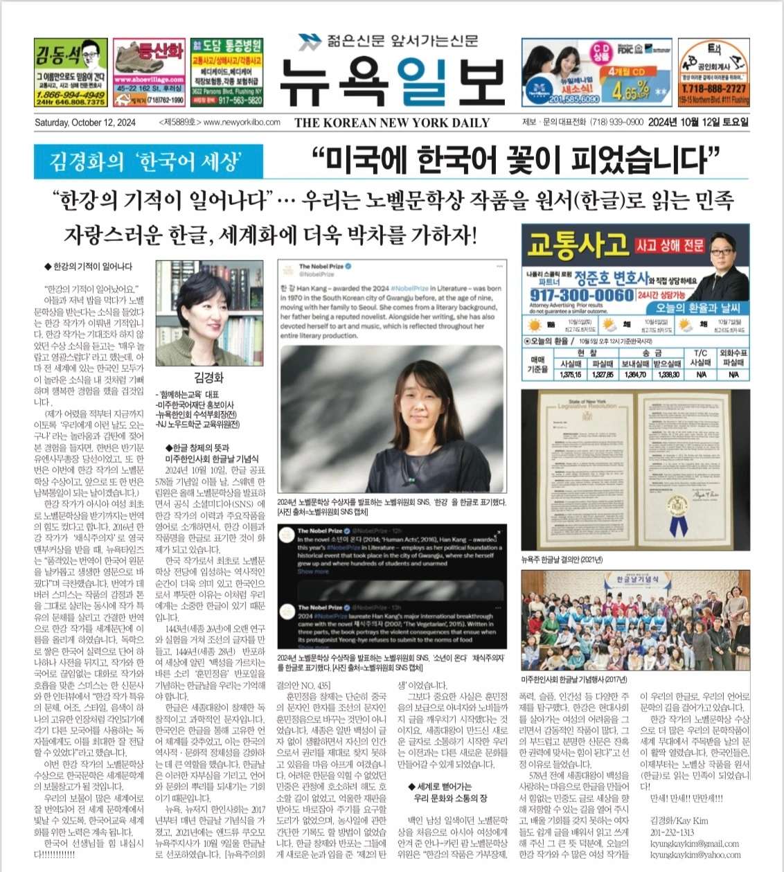 2024년 10월 10일, 한글 공표 578돌 기념일 이틀 날, 스웨덴 한림원은 올해 노벨문학상을 발표하면서 공식 소셜미디아 (SNS)에 한강 작가의 이력과 주요 작품을 영어로 소개하면서, 한강 이름과 작품명을 한글로 표기한 것이 화제가 되고 있습니다. 한국작가로서 최초로 노벨문학상 전당에 입성하는 역사적인 순간이 더욱 의미 있고 한국인으로서 뿌듯한 이유는 이처럼 우리에게는 소중한 한글이 있기 때문입니다.