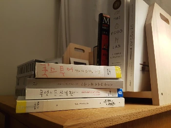이렇게 책을 빌리거나 사고 나면 한동안 책을 휘감고 지낸다. 술자리를 옮겨가며 술을 마시듯, 장소를 옮겨가며 책을 읽는다. 장소나 분위기에 따라 맞는 책이 다르지 않은가. 자기 전에 읽을 책은 침대 옆에, 출퇴근 길에 읽을 책은 가방에, 집중해서 읽을 책은 책상 위에 두고 이 책 저 책 기웃 거리며 읽는다.
