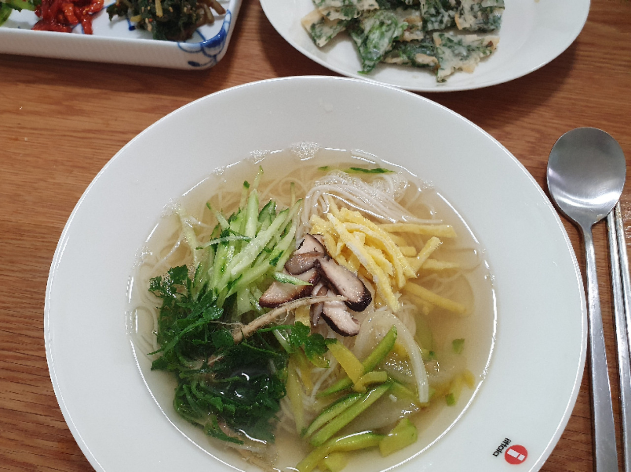 나는 고명을 따로 만들어 올렸지만 굳이 안 올려도 상관없다. 고명 대신 육수에 냉이 넣을 때 냉장고에 있는 다른 야채들을 채 쳐서 넣어도 된다.