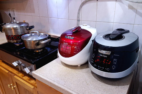 귀국하자마자 공항 리무진에서부터 가정용 가마솥을 검색해보다가 다시 한번 꾹 참았다. 우선 일반적인 방법들부터 고민해보기로 했다. 막연히 쌀을 미리 불려서 밥하면 맛있다, 압력솥에 밥하면 맛있다고 알고 있었다. 하지만 그렇게 하면 정말로 맛있을까? 일상적인 취사 방법들을 비교해보았다. 엄정한 비교를 위해 실험은 친정에서 했다. 갓 지은 밥일수록 맛있는 건 실험하지 않아도 모두가 아는 사실이다. 밥을 동일한 시점에서 해서 비교하기 위해 전기밥솥 2개가 필요했다. 우리 집 밥솥을 짊어지고 친정으로 향했다.
