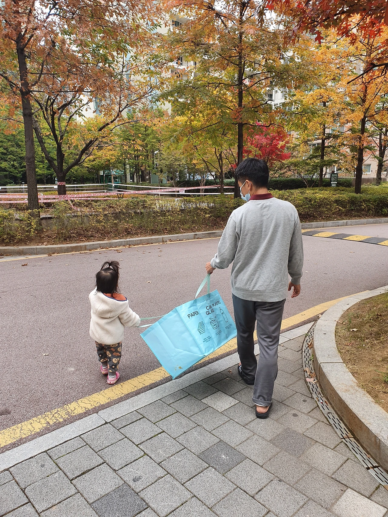 내복 바람으로 쓰레기도 함께 버리러 가고