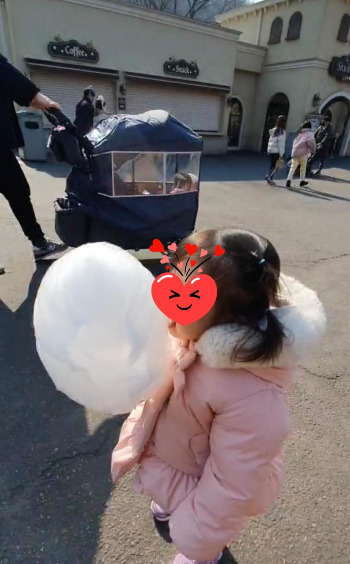 엄마가 있었으면 안 사줬을 솜사탕. 솜사탕을 먹어서 아이도 행복했고, 그걸 보는 남편도 행복했다고 ㅎㅎ