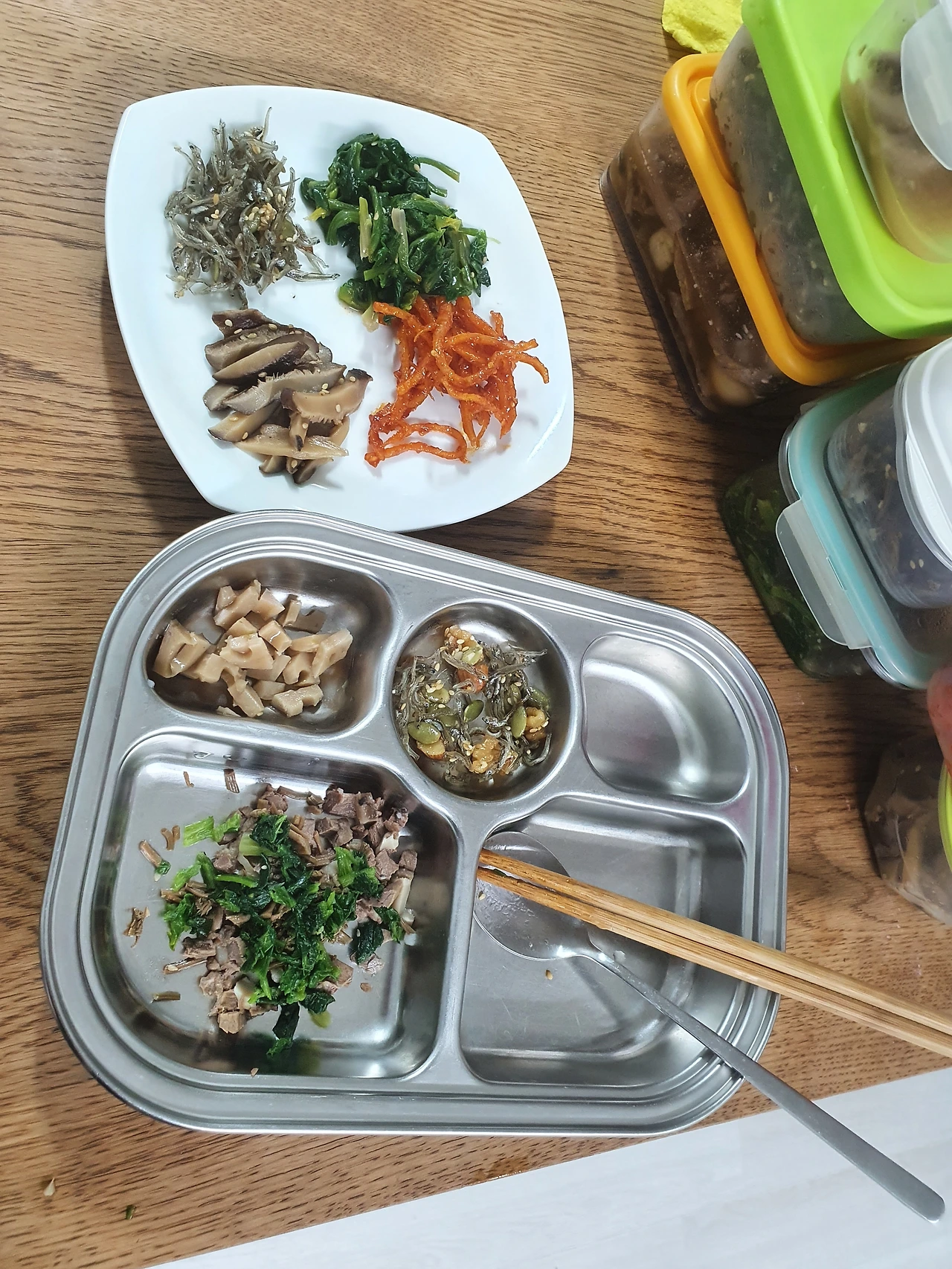 외출하는 날이면 아이 남편 반찬을 미리 다 해놓고 담아놓는다.
