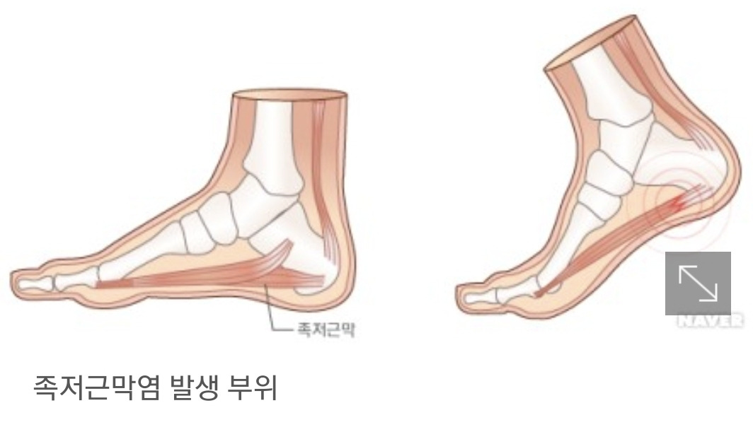 발바닥에서 뒷꿈치로 연결되는 부위가 아프다