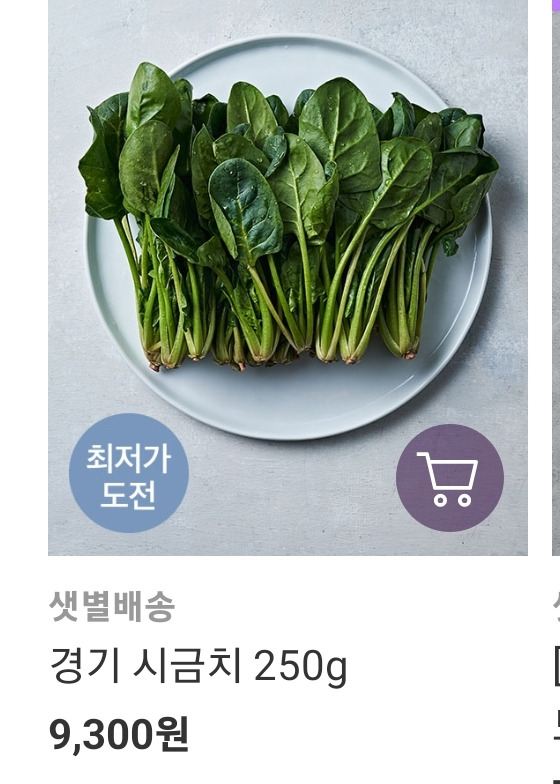제철이 아니라도 한 단(200~250g)에 4000원 정도면 샀던 것 같은데, 어제는 시금치를 사려고 마켓 컬리에 들어가 보니 9800원이었다. 이마트몰에서는 7000원대.