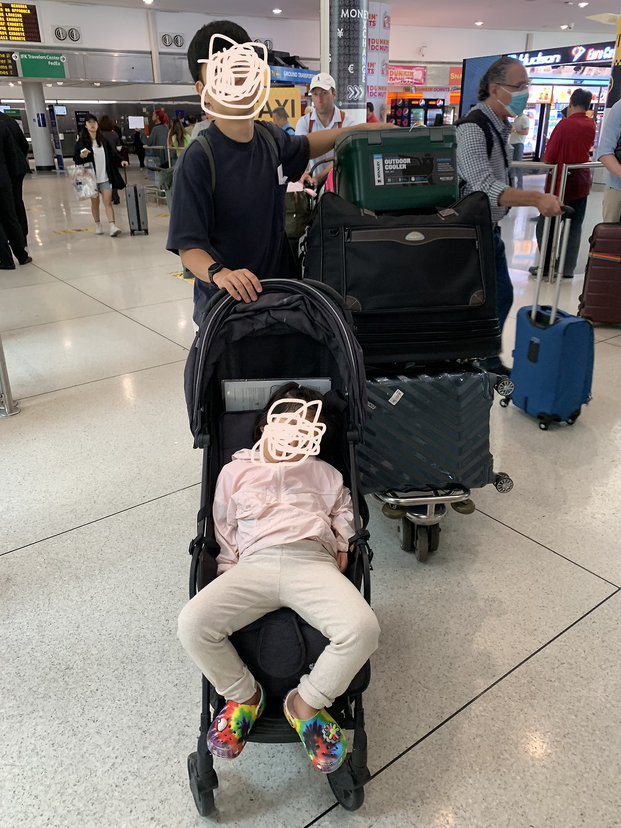 비행기가 착륙하고 나서부터는 남편과 문자가 됐다. 낮 시간인데도 실시간으로 남편과 연락이 되는 것부터 좋았다. 딸내미는 비행기에서 1시간 밖에 자지 못해 내리자마자 유모차 위에서 잠들었다고 했다. 그 이후 입국 심사나 짐 찾는 과정을 생각하면 오히려 다행이었다. 입국 심사는 어린 딸내미 덕에 패스트 트랙을 타서 30분 만에 마칠 수 있었고, 짐도 금방 찾아 착륙 후 1시간 만에 만날 수 있었다.