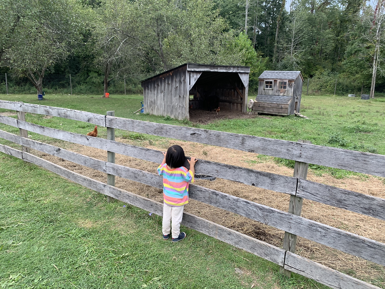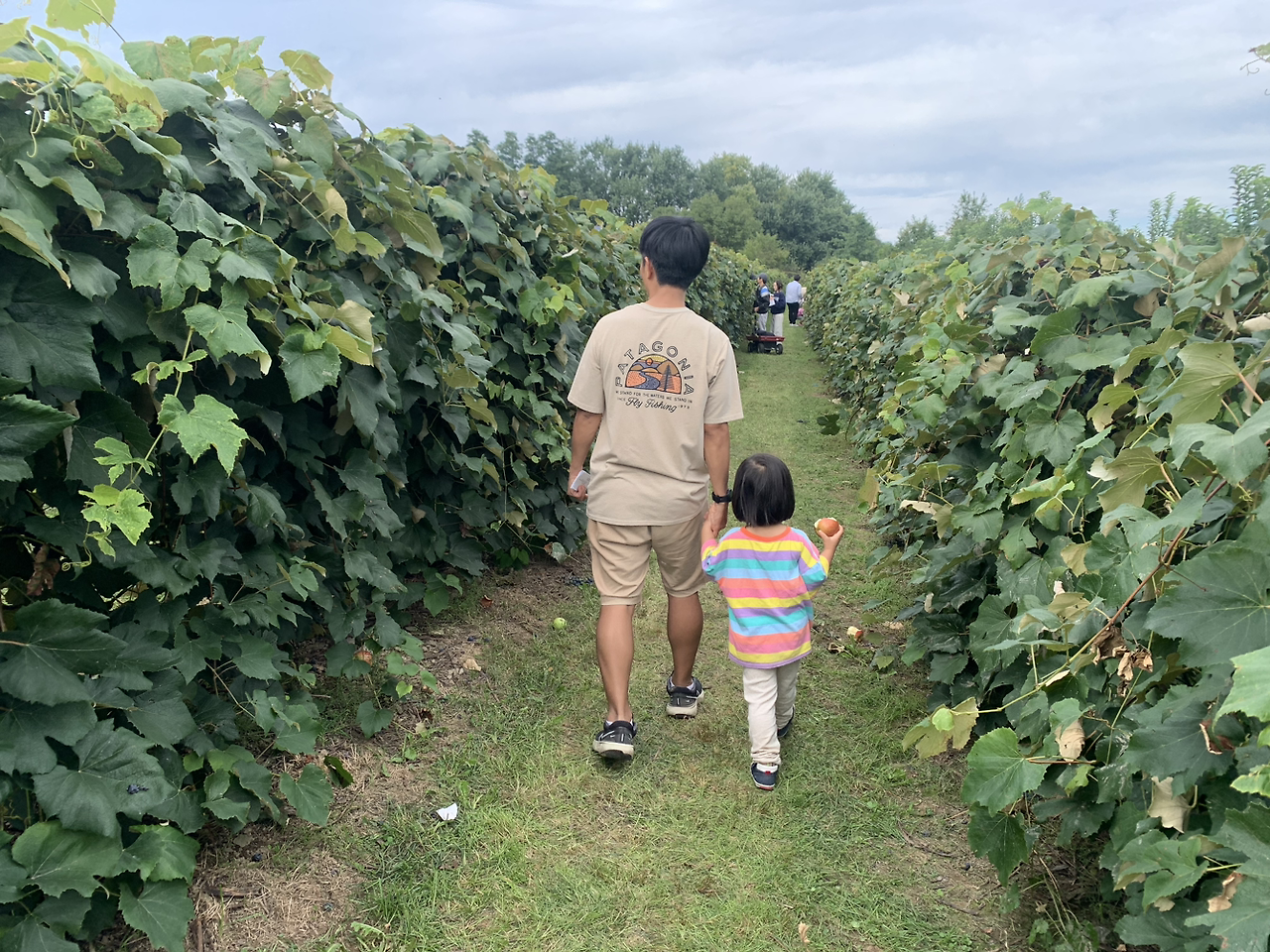 나는 사과 따기 체험과 곁들여 파는 식음료 정도 예상했는데 놀거리도 많았다. 작물도 포도, 토마토, 줄기콩, 스쿼시 등 다양한 걸 따갈 수 있었고, 트랙터도 탈 수 있고, 동물들도 있었다. 나무로 만든 집이나 미끄럼틀 들도 있었는데 아이가 거길 진짜 좋아해서 주로 거기서 놀았다. 3시간 정도 놀 줄 알았는데 문 열 때부터 닫을 때까지 6시간 여를 놀다 왔다.