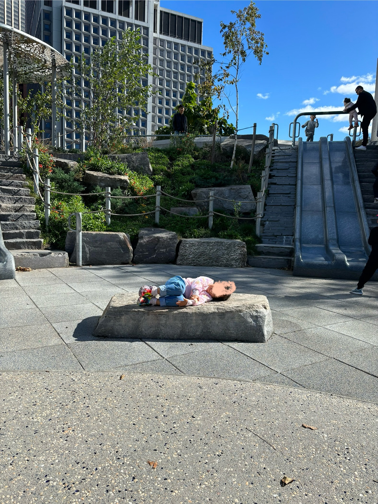그리고 오늘은 배터리 파크에 갔다. 남편이랑 아이랑 같이 간 적이 있는데, 거기 놀이터를 아이가 그렇게 좋아했단다. 기온이 10도쯤 돼서 쌀쌀하긴 했지만 햇빛도 있고 아이랑 뛰어놀다 보니 있을만했다. 몇 번의 외출을 통해 아이랑 바깥에 나오면 사 먹을게 마땅치 않고 비싸다는 교훈을 얻어, 간식뿐 아니라 볶음밥까지 잔뜩 싸왔더니 자리를 뜨지 않고 내내 놀 수 있었다.