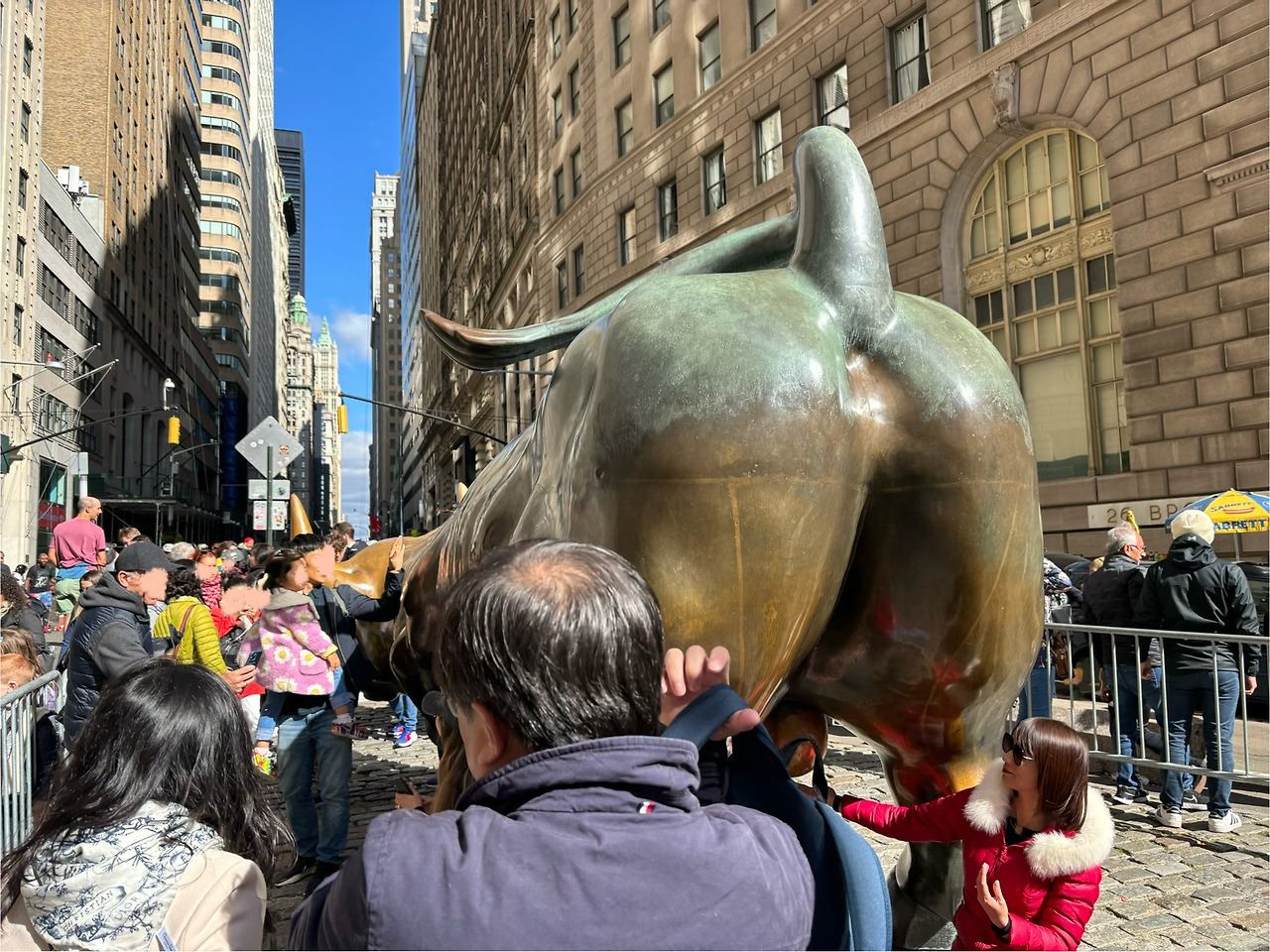 2시간을 넘게 놀다가, 근처에 남편이 보고 싶어 했던 월가 황소 동상도 보고 뉴욕 증권 거래소도 갔다. 남편은 블루보틀 데뷔도 하고. 그렇게 잘 놀다 오는데 이 놈의 대중교통이 또 문제였다.