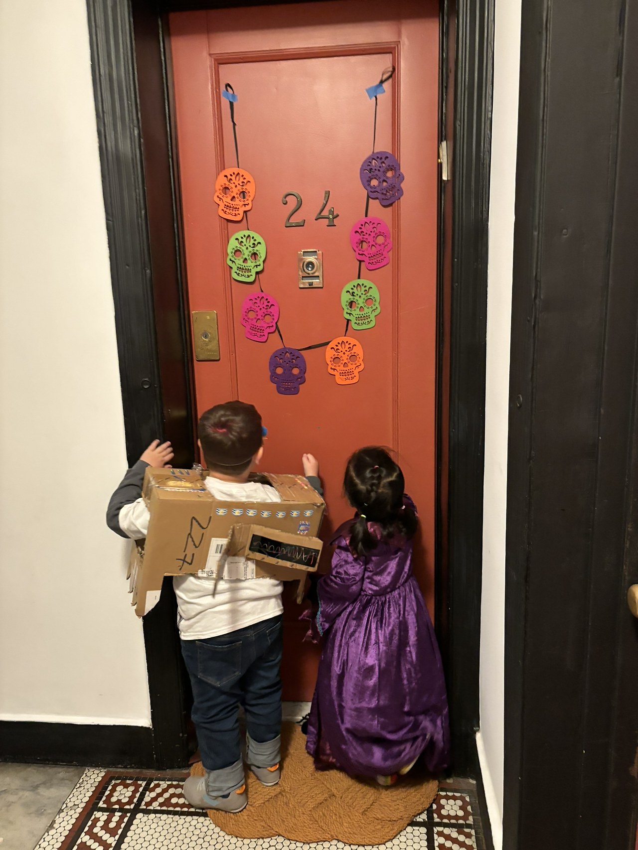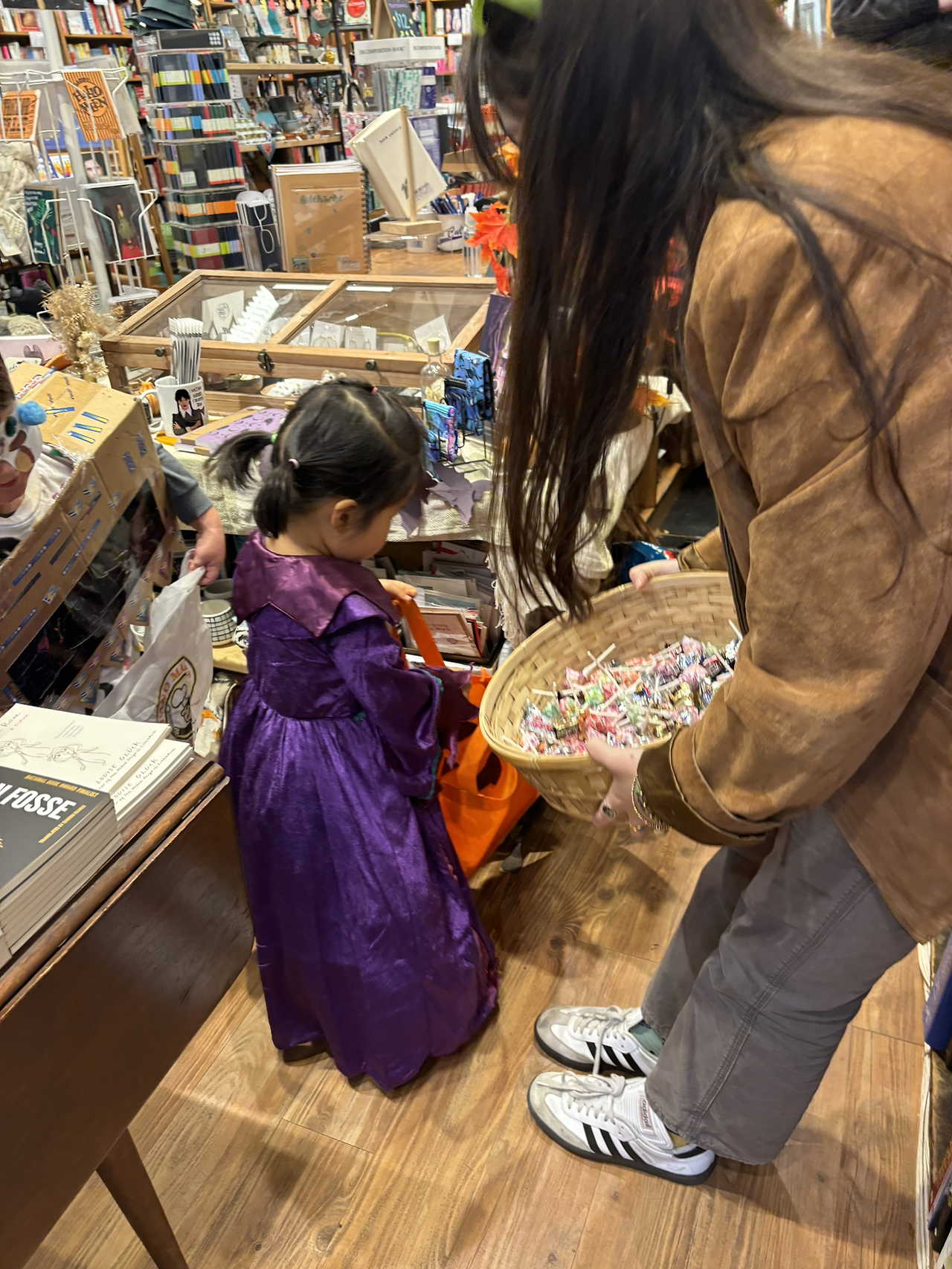 아이가 하원하고 간식을 챙겨 먹고 옷을 갈아입은 후, 4시에 거리에서 만났다. 보통 4시에 만 3-4세 아이들이 돌아다니기 시작하고, 초등학생쯤 되면 6시쯤, 7시쯤에는 10대들이 다닌다고 했다. 만나서는 근처의 가게들을 쭈욱 돌았다. 보통 Trick or Treat은 집을 돌아다니면서 하지만, 뉴욕은 대부분 사람들이 주택이 아닌 아파트에 살아 집집마다 돌아다니면서 Trick or Treat을 하기 쉽지 않아 가게를 돌아다닌다고 했다. 이게 뉴욕만의 특징이긴 한지, 학교의 미국인 동기들이 나에게 여기선 어떻게 Trick or Treat을 하는지 아냐고 물어보기도 했다.