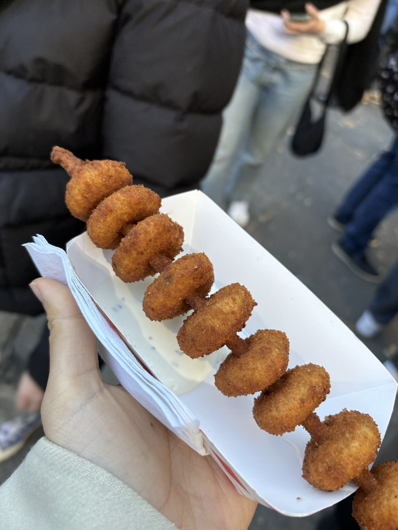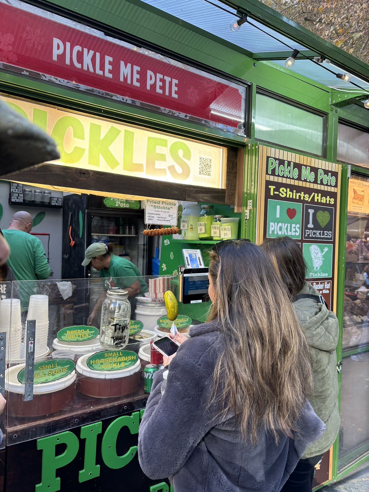 신기한 건 그 가게에서는 피클 꼬치 (!)나 피클 샘플러 (!)도 팔았는데 불티나게 팔렸다. 커다란 오이 피클 하나를 막대기에 꽂아 사람들이 우적우적 씹어 먹었는데 신기했다. 나도 가끔 입이 텁텁하면 김치만 먹기도 하는데... 신기했다. 특히 피클 샘플러는 큰 오이 피클 6개를 그냥 주던데. 이 피클 가게가 가장 인기 있는 곳 중 하나였는데, 줄 선 사람들이 4-50%는 피클 튀김이 아니라 피클을 주문했다. 신기했다.