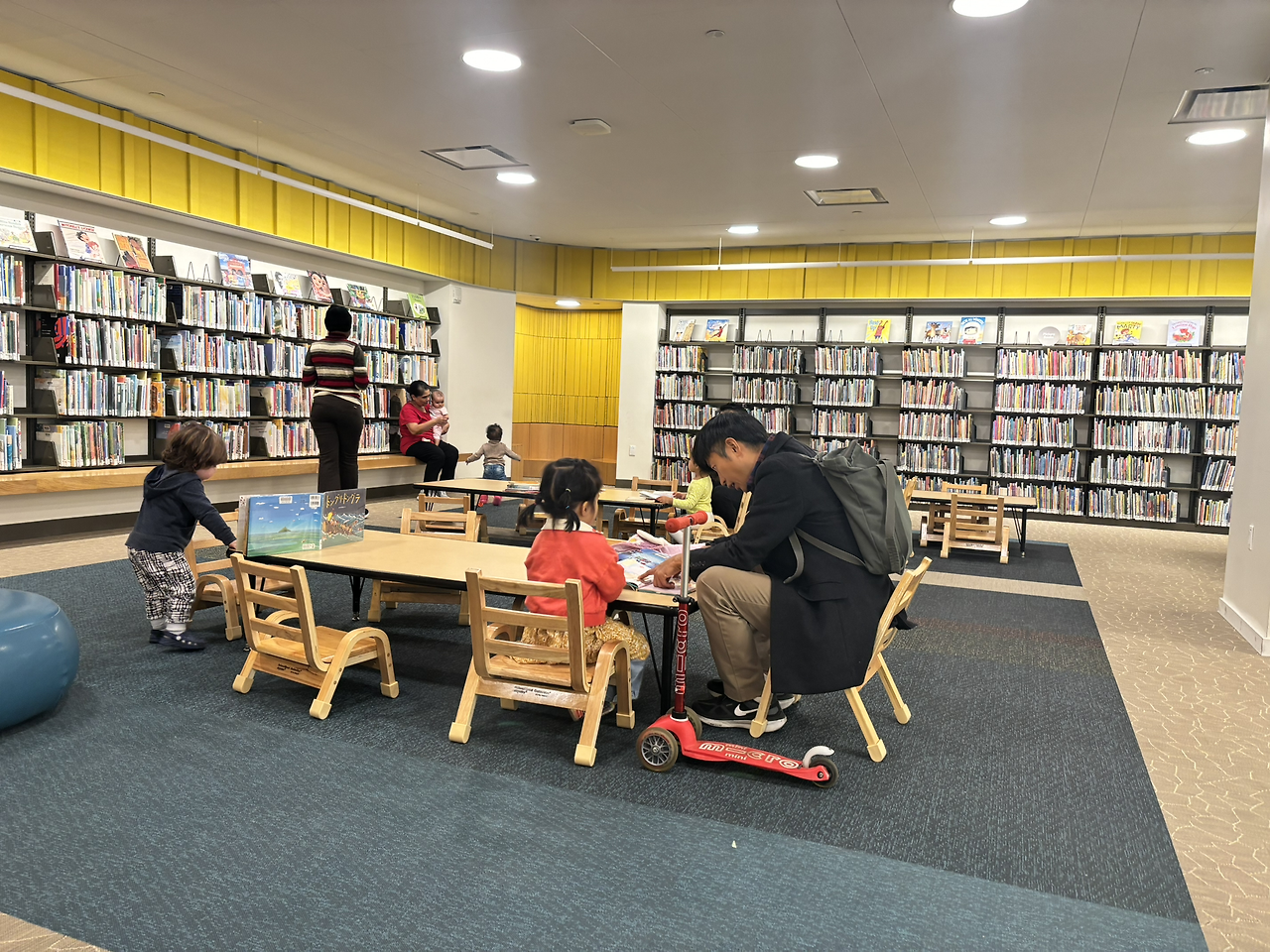 미드타운은 거의 우리 생활 반경이나 마찬가지인데, 남편은 이런 곳도 아이랑 나오는 건 딱히 반기지 않았다. 궁금해하지도 않고. 그나마 브라이언트 파크는 한 번쯤 가봐야지 생각했다고 하지만. 그래도 다행히 여기는 어린이 도서관이 있었다. 브라이언트 파크 바로 옆에 그 유명한 뉴욕 공립 도서관이 있는데, 거기는 지금은 거의 상징적인 건물로 남아 전시나 열람실만 운영하고 진짜 도서관은 옆에 신관으로 운영하고 있다. 그 건물 지하에 어린이 도서관이 있어서 남편은 내가 향신료 샵을 구경하고 장신품을 구매하는 동안 아이와 거기에 가있었다. 나도 곧이어 갔는데, 우리 동네 작은 도서관과는 비교도 안되게 좋았다. 책도 엄청나게 많았고 아주 작지만 놀이 공간이나 별도 행사 공간도 있었다.
