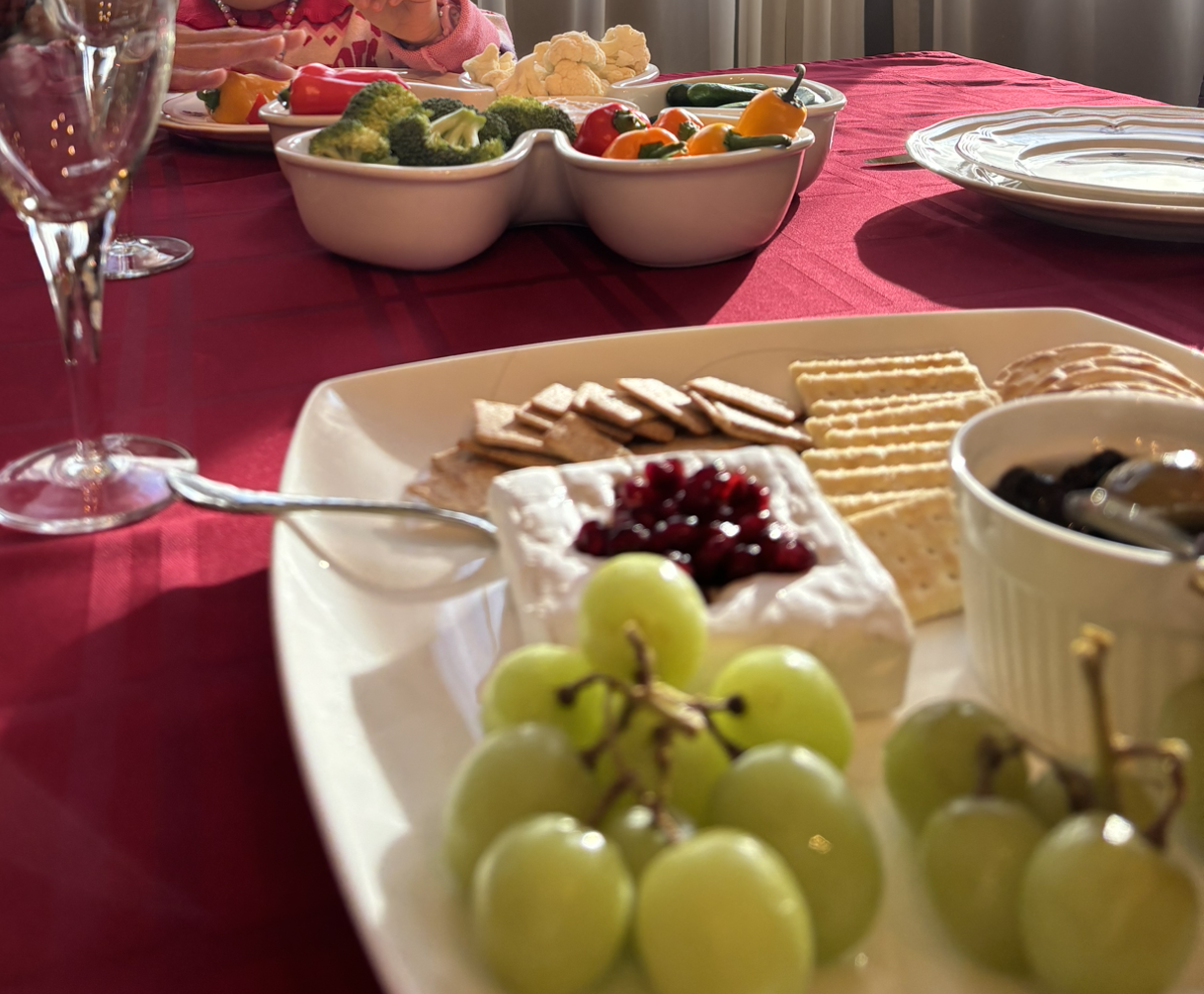 들어가서 와인과 야채&랜치소스/ 치즈&크래커 플래터로 시작해서 먹고 얘기하다가, 다른 손님들이 와서 또 그 사람들과 먹고 마시다가, 저녁 시간이라 먹고 마시다가, 잠깐 쉬는 시간이라 칩을 먹으며 보드게임하며 마시다가, 또 디저트를 먹었다. 집이 워낙 크니까 식당, 지하, 거실 등등 장소만 바꿔도 1차 - 2차 - 3차 느낌으로 리프레쉬가 되었다.
