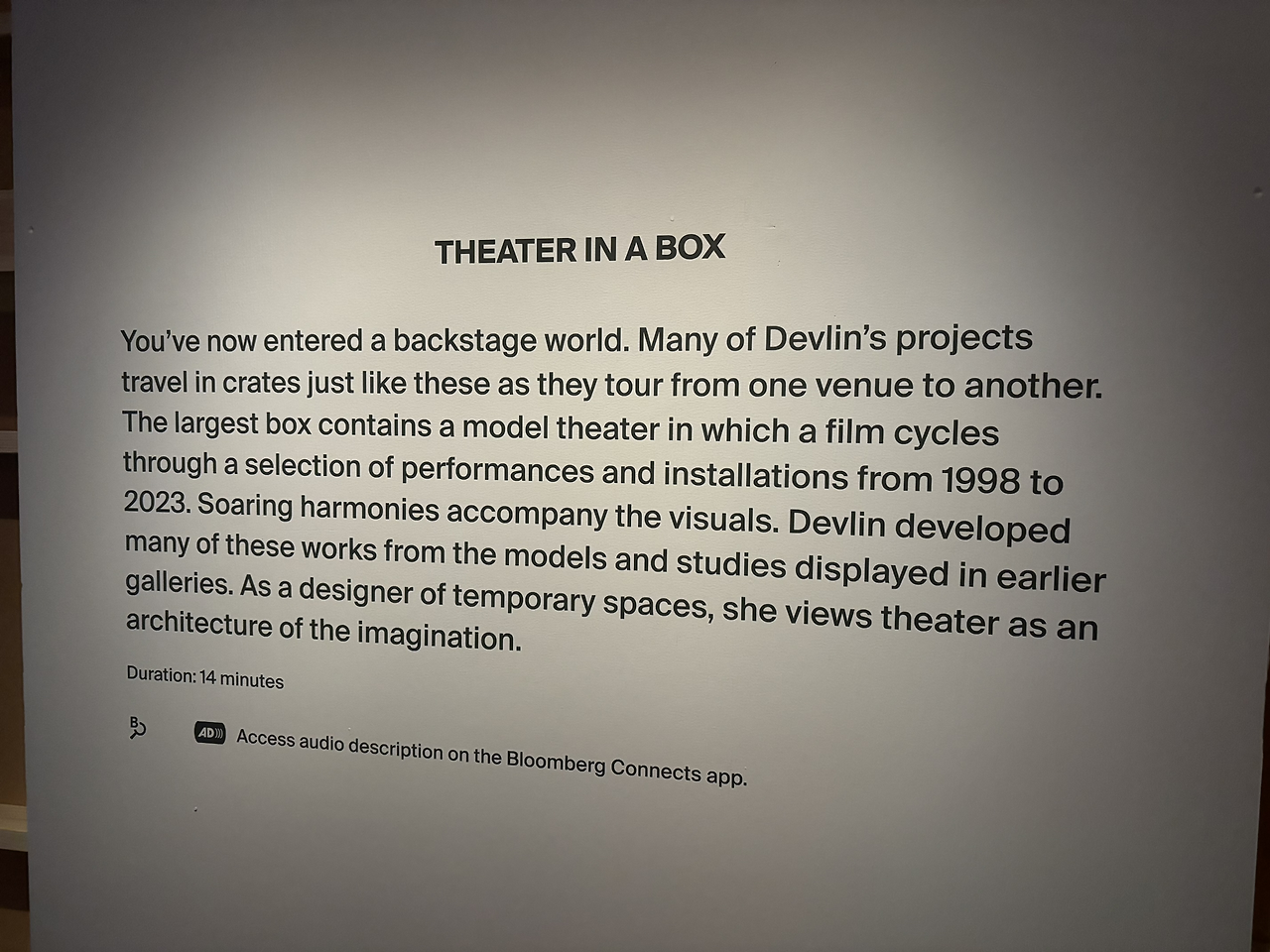 전시 중에 'As a designer of temporary spaces, she views theater as an architecture of the imagination' (임시적인 공간들의 디자이너로써, 그는 공연장을 상상의 건물이라고 본다.('상상의 건물' 부분은 아마 상상을 이룰 수 있는 공간 등으로 아마 의역될 것 같다 ㅎㅎ))라는 표현을 봤는데, '임시적인 공간들의 디자이너'라는 자기규정이 부정적인 느낌이나 허무함으로 이어지는 게 아니라 긍정적이고 새로움으로 이어지는 게 인상 깊었다.