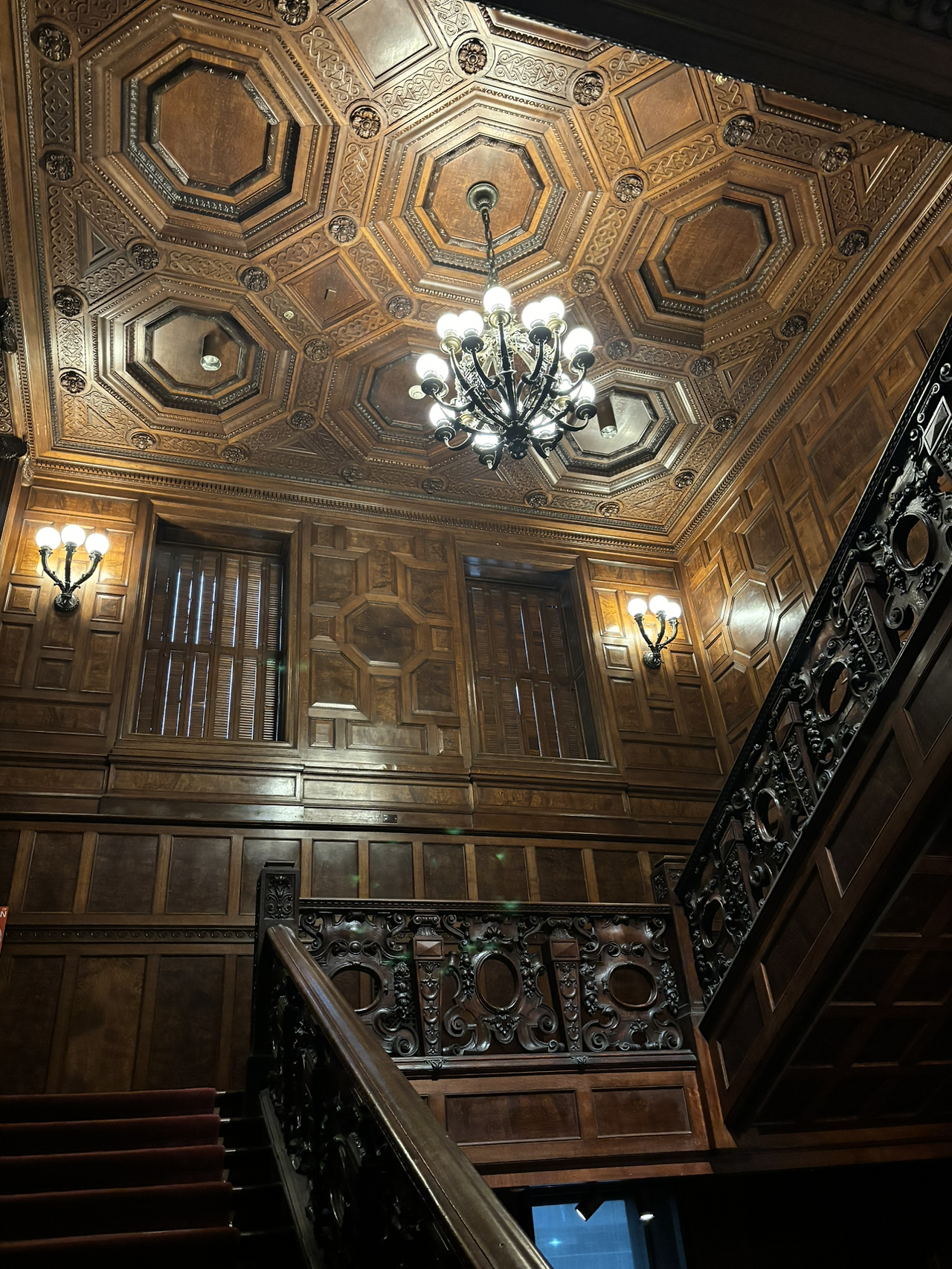 이 박물관을 방문하면 즐길 수 있는 또 다른 포인트는 건물 그 자체다. 카네기가가 거주했던 이 건물은 (!) 건물 자체로 굉장히 멋지다. 전시실을 올라가는데 옆의 나무 벽 한 칸 한 칸이 단순한 나무가 아니라 굉장히 자연 마블링이 잘된 하나하나의 예술품들이었다.