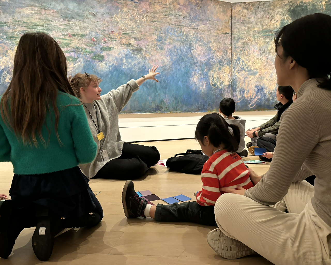 주제는 '자연'이었고 자연을 담은 회화 작품들을 소개하고 거기에 대해 생각해 보는 액티비티를 했다. 예를 들어 (나의 최애작인!!) 모네의 수련 앞에서 여러 가지 색깔 카드를 나눠주고, 그 색깔을 작품 안에서 찾아본 후, 그 색깔이 무슨 모양을 나타내는 걸지 얘기해 보고, 이 그림을 보고 어떤 느낌이 드는지 대화를 하는 형식이었다.