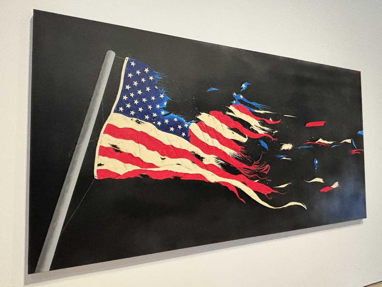 갈기갈기 찢어진 성조기를 그려놓고, 트럼프 당선 1년 후 그린 그림으로 평소에는 정치적인 내용을 그리지 않지만 이 그림은 정치적이라고 적어둔 것도 재밌었다.