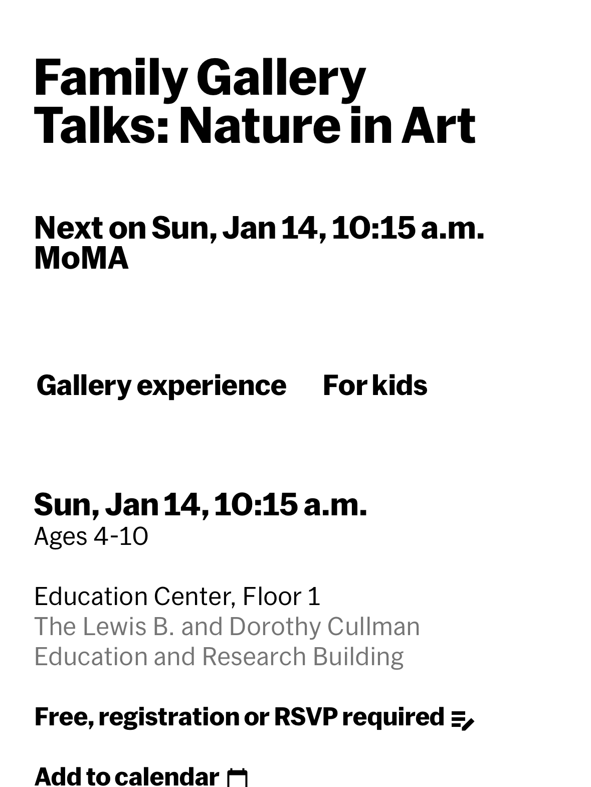 오늘도 뭐 하나 싶었는데, MOMA에서 어린이 프로그램을 하는 게 있어서 냉큼 갔다. 아이들에게 미술 작품을 감상하고 토론하게 해 보는 프로그램인데, 사실 전에 조각을 주제로 했을 때 아이랑 같이 갔는데 별로 좋아하진 않았었다. 하지만 가면 다른 놀이 공간도 있고 나쁘지 않을 것 같아 일단 MOMA로 향했다.