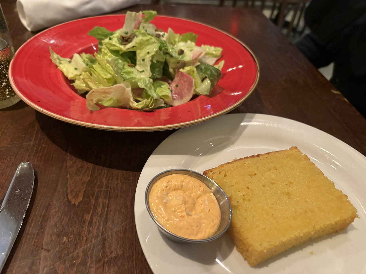 식당은 나쁘지 않았다. 유명 요리 경연 프로그램에서 우승한 스타 셰프가 운영하는 곳이라 동기들도 많이들 알더니만, 평일 점심임에도 식당이 가득 찼다. 샐러드에 갈릭 매쉬/ 콜라드 사이드에 잔뜩 시키고 치킨도 두 종류를 시켰다.