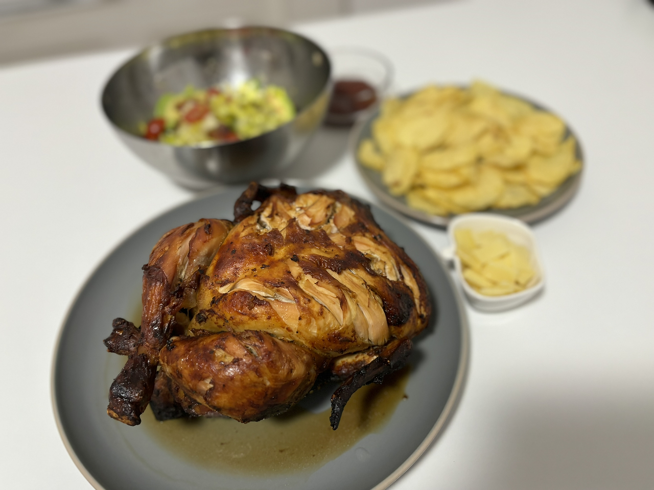 그럼 우리도 빠질 수 없지 ㅎㅎ 집에 TV도 와이파이도 없지만, 슈퍼볼 중계를 보려고 유튜브 TV를 구독하고 핫스팟을 연결했다. 오늘 오후에는 외부에서 딸내미 친구네와 플레이데이트가 있어서 너덜너덜했는데, 오는 길에 마지막 힘을 짜내어 근처 마트에 들러 치킨과 감자칩까지 샀다.
