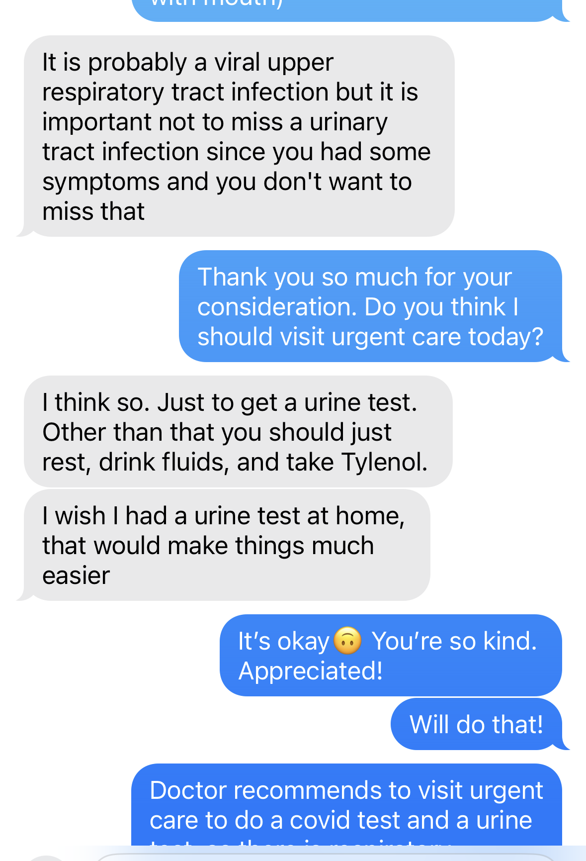 얘기를 해보니, 간단한 상기도 감염인 것 같긴 하지만 잔뇨감은 혹시 감염일 수도 있으니 오늘 테스트를 해보는 게 좋겠다고 했다. 단 얼전트케어는 초기 임산부는 안 받을 수 있으니 우선 산부인과에 전화해 보라고. 자기가 아는 산부인과 의사도 있으니 무슨 일 있거나 하면 바로 전화하라고 얘기해 주었다. 진짜 고마웠다. 이런 지인을 만난 건 진짜 무슨 복인지 모르겠다.