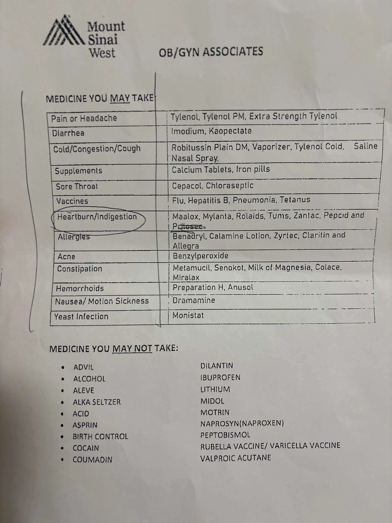 산부인과에서 받은 먹어도 되는 약 리스트를 열어봤다. 한국산부인과에서는 이런 거 받은 적이 없는데, 여기서는 병원 한번 가는 게 큰 일이니 약국에서 살 수 있는 약 리스트를 주는 모양이었다.