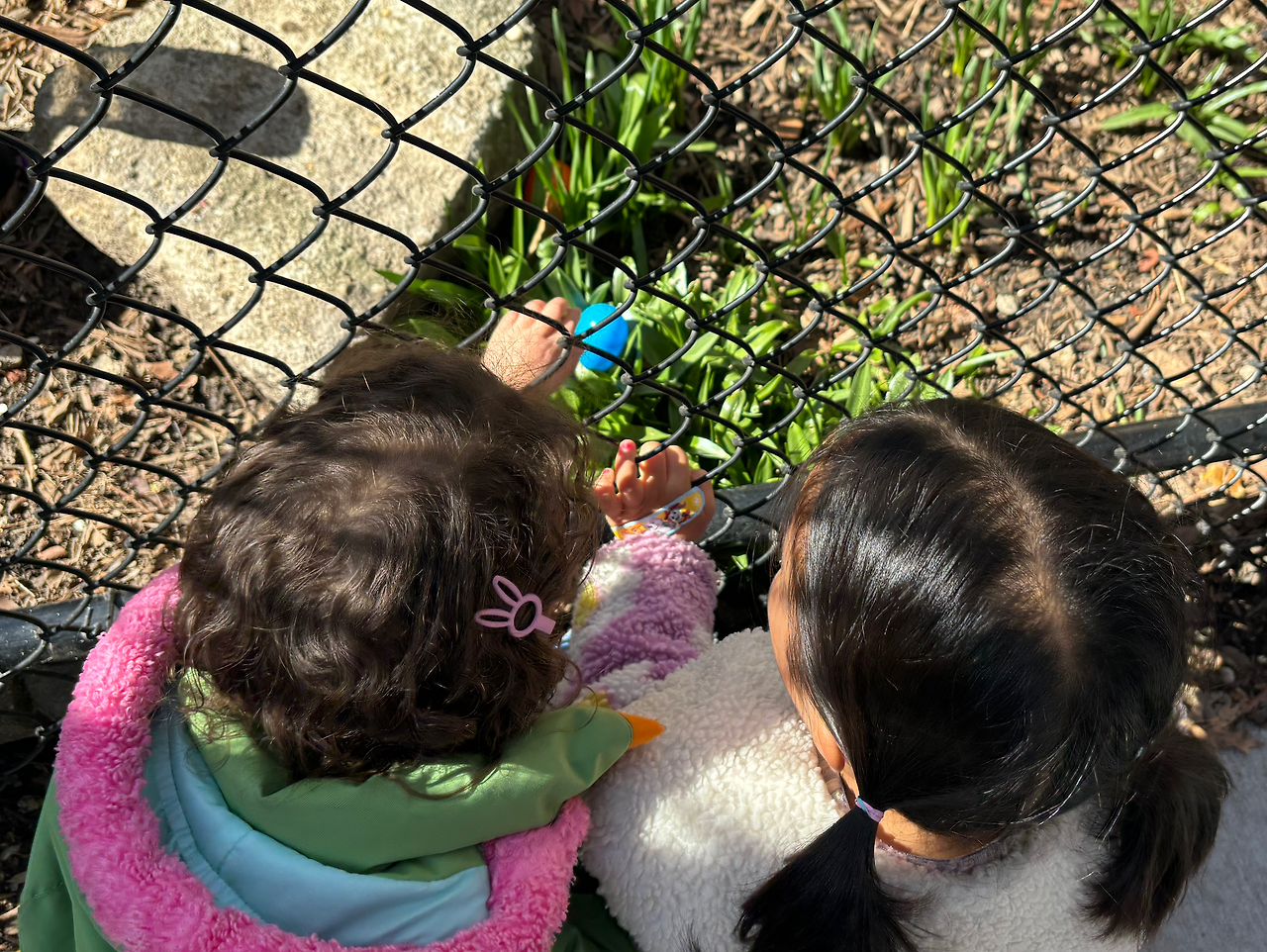 나는 토요일 아침에 계란 프라이를 하면서 ‘에그 헌팅하면 삶은 계란 많이 먹게 될 텐데 계란은 하지 말 걸 그랬나…’ 했는데, 여기 에그 헌팅은 다 플라스틱 계란으로 했다 ㅋㅋ 알록달록한 플라스틱 계란을 열면 작은 초콜릿이나 액세서리, 스티커 등이 나왔다.