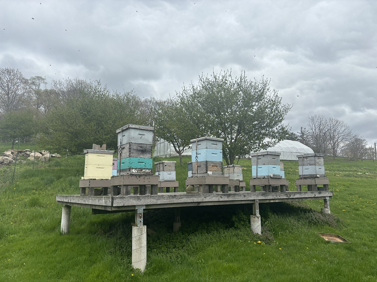 그리고 다른 농장들과 달리 다른 이들을 도울 여유를 보였다. 벌도 기르고 있었는데, 주변에 야생 벌이 많아서 딱히 수분을 위해 기를 필요는 없지만 학계와 협력할 때 연구 지원을 위해 기른다고 했다. 농장 주변은 꽤 넓은 주립 공원이었는데, 입지 좋게 주립 공원 바로 옆에 위치했나 싶었더니 그게 아니고 원래 농장 땅을 주에 기부해서 주립 공원이 되었다고 한다. 거기서 소도 기르는데, 초지가 워낙 좋아서 (뉴욕주는 초지가 워낙 좋아서 유제품이 맛있고, 그래서 Dairy farm이 많다고 한다.) 100% 방목으로 키우긴 하지만 딱 필요한 만큼만 기르고 있다고 했다.