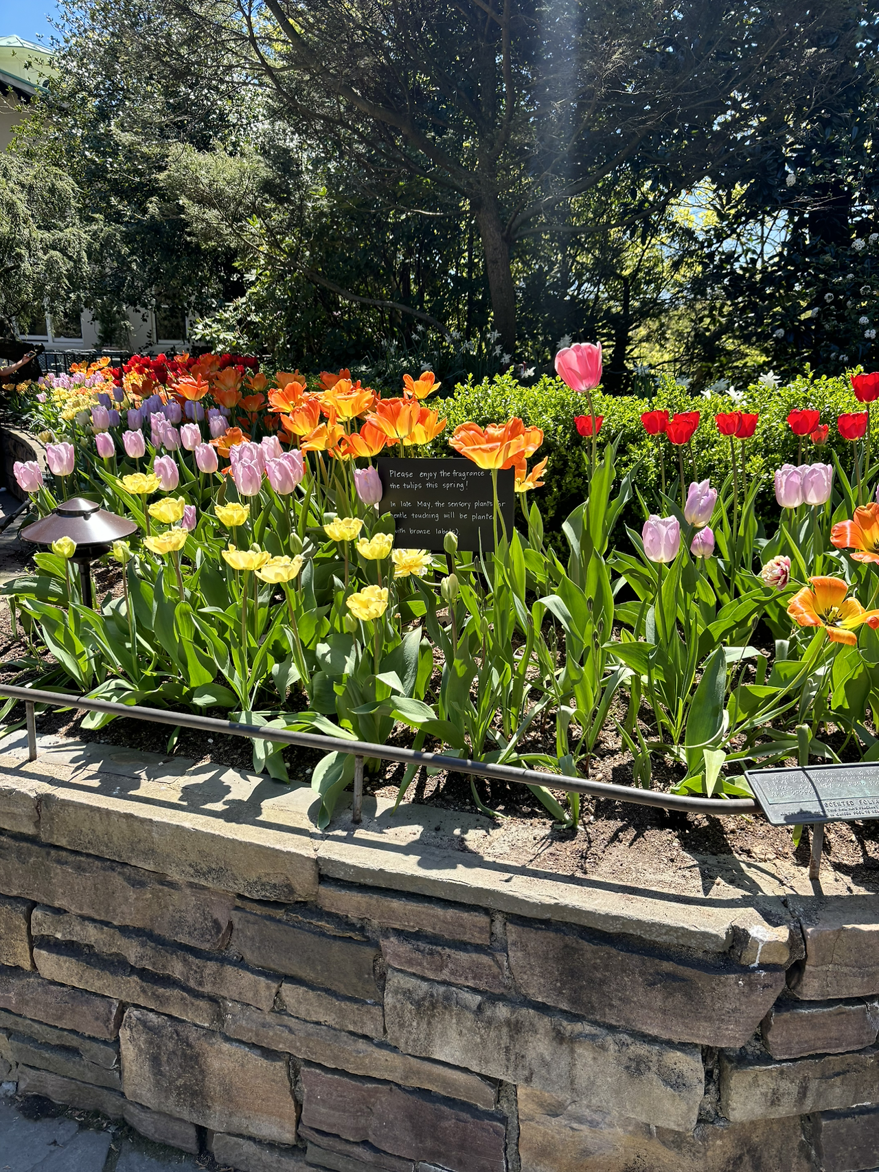 한참을 놀고먹고 떠들다가 다른 곳들도 가봤는데 전부 예뻤다. 여러 종류의 튤립이 가득한 정원, 접근성을 고려한 정원 (신체가 불편한 사람들을 위해 화단의 높이를 높여 꽃을 심어놨고, 점자 설명도 구비해 놨으며, 아이들이 마음껏 꽃을 만져볼 수 있도록 허용해 두었다.), 열대/ 사막/ 수중 식물 등이 있는 온실, 일본식 호수 정원을 보았다.