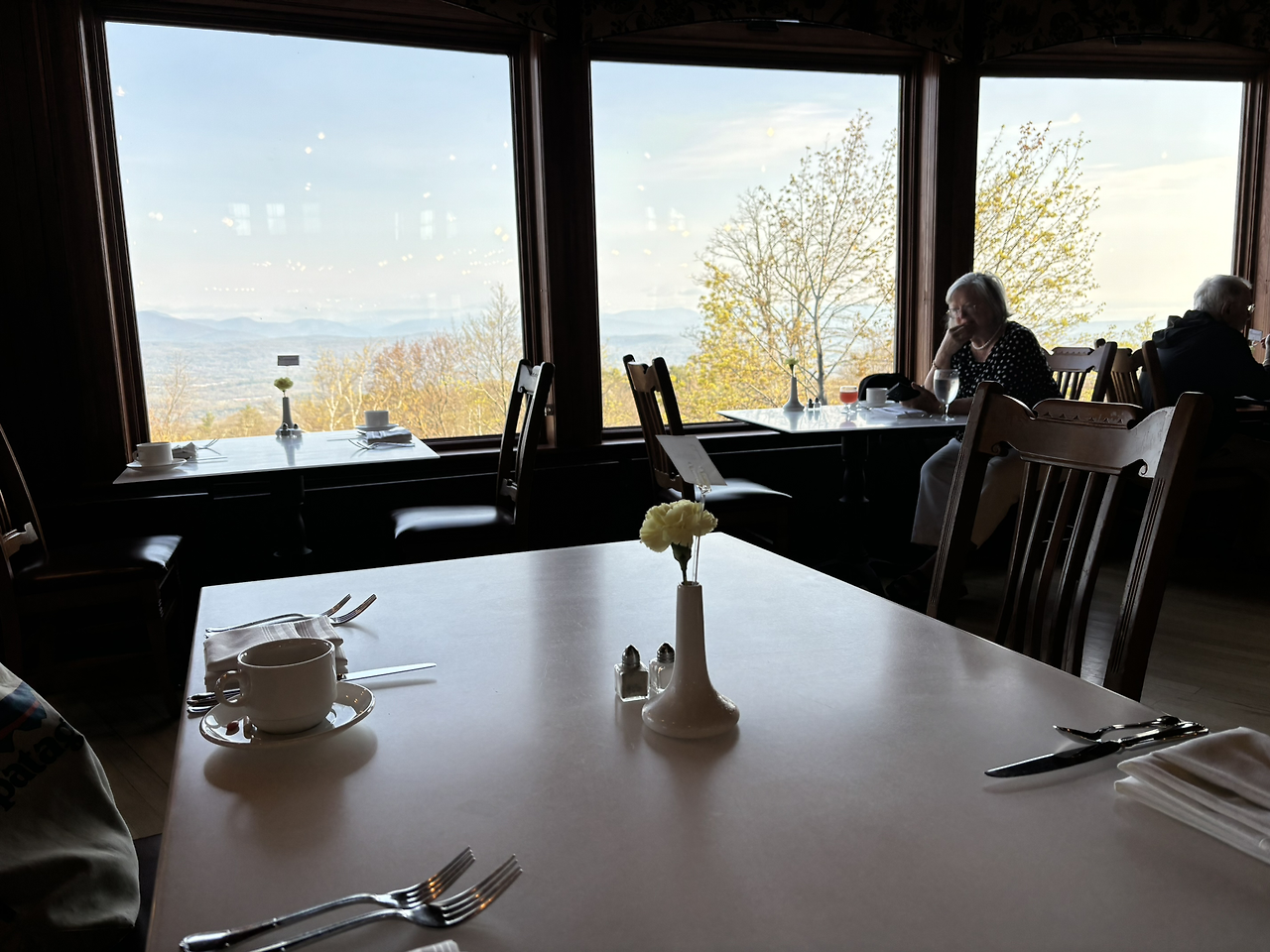 그렇게 먹으니 다음날 아침까지 배가 하나도 안 고팠지만, 그래도 아침 식사는 즐거웠다. 우선 아침이라 식당 전면 창 밖으로 산세가 훤히 보였다. 보통 호텔 조식 뷔페와 달리 웨이터가 많아서 서비스도 제대로 제공되었다. 요리를 뛰어나게 잘하는 식당은 아닌 것 같지만 워낙 재료들이 좋다 보니, 좀 더 기본적인 요리가 제공되는 아침이 더 맛있게 느껴지는 측면도 있었다. 오믈렛 스테이션에 랍스터가 내용물 옵션으로 제공되는 건 진짜 처음 봤다. 신경 쓴 재료들이 많아서, 와플에 뿌리는 시럽도 뉴욕주 시럽, 버터와 크림치즈도 로컬, 빵에 곁들이는 잼도 호텔에서 만든 베리 잼이었다.