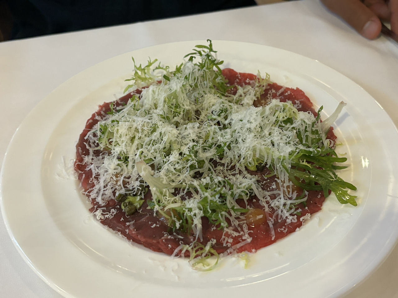 전채로는 랍스터 비스크 (수프)와 마히마히 생선 타다키, 비프 카르파치오 (육회)를 시켰다. 예상외로 아이가 수프를 맛있게 먹어줘서 기뻤다. 여행지에서는 항상 햄버거, 타코, 감자튀김의 반복이었는데.