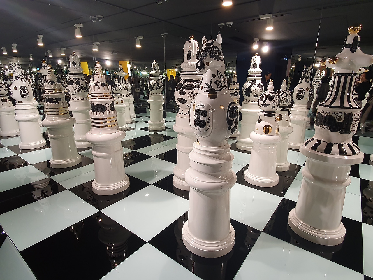 오브제 중 가장 흥미로웠던 건 거대한 체스 모형들이었다. 사람 크기로 만들 체스 모형들이 체스판처럼 생긴 전시장 안에 서 있었다. 체스판 위에서 모형들과 눈높이를 맞추어 서있자니, 마치 내가 체스 말이 된 느낌이었다. 체스 모형에는 바퀴가 달려 있어, 다른 나라에서는 사람이 상대편 체스 말이 되어 이 모형들과 체스를 하는 체험형 전시도 진행되었다고 한다. 대림미술관 전시는 워낙 사람이 몰리는 데다, 아직 우리나라 전시 문화가 체험형 전시를 쉽게 할 만큼 성숙하지는 않았다고는 하지만, 아쉬웠다. 우리나라에서도 체험형 전시가 좀 더 많아지는 날이 오겠지.