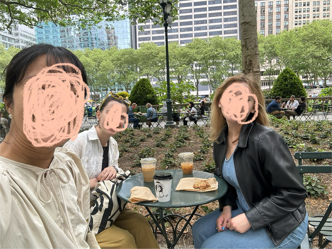 쿠키와 커피를 사서 브라이언트 파크에 앉아 수다를 떨었다. 마침 점심시간이라 테이크아웃 음식으로 공원에서 점심을 먹는 사람도 많았고, 주식 트레이더가 내내 주식 얘기를 하며 주변을 정신없이 왔다 갔다 하기도 했다. 나 진짜 뉴욕에서 살고 있구나 실감이 났다.