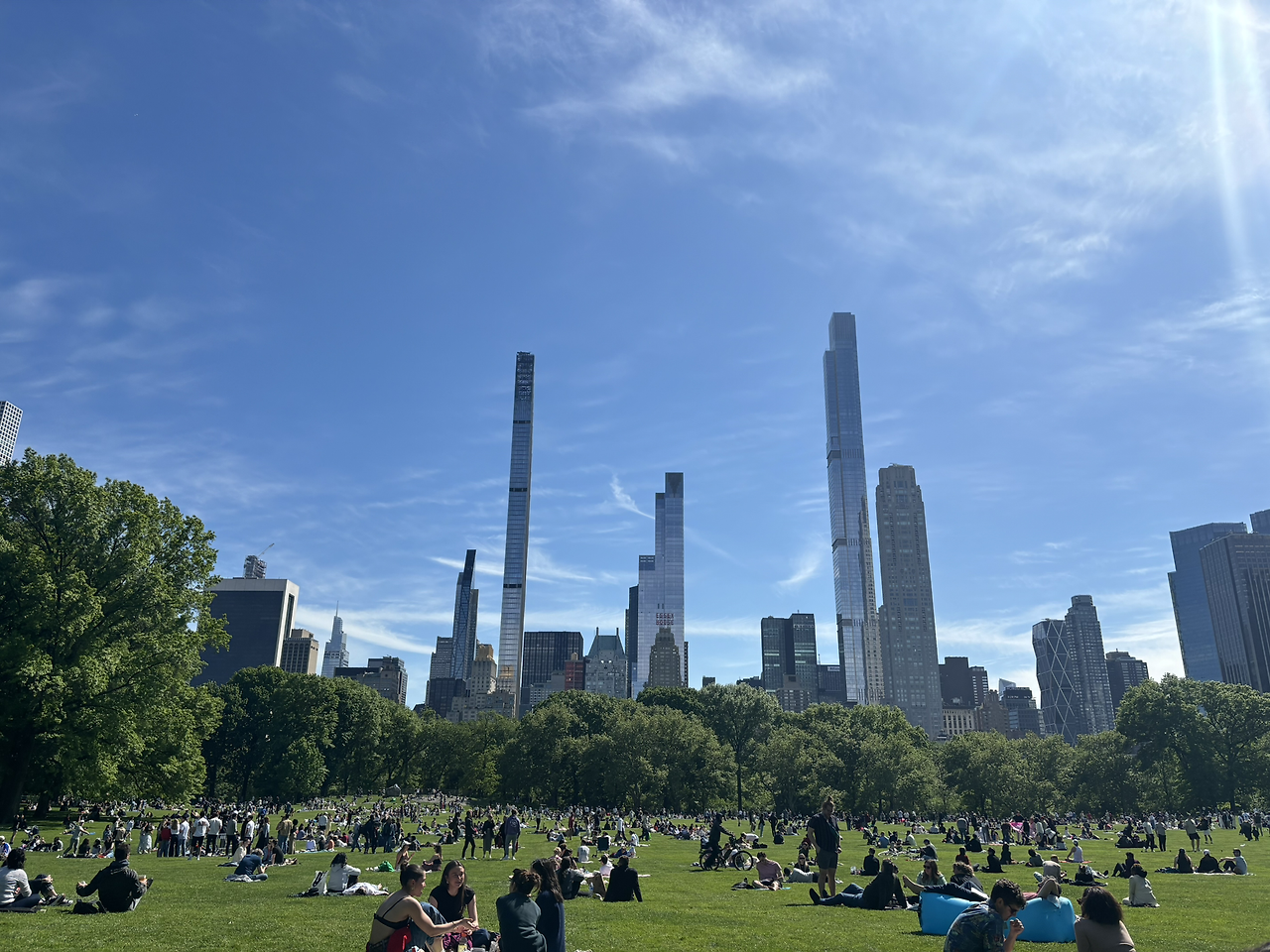 요즘 날씨가 엄청 오락가락해서 걱정했는데, 마침 날씨가 쨍하니 맑았다. 오랜만에 맑은 데다 덥지도 않고 춥지도 않은 날이라 센트럴 파크가 미어터졌다. 동기가 파스타 샐러드에 각종 스낵, 음료들을 챙겨 와서 먹고 마시고 놀다가, 딸내미 나무 좀 태웠다가 산책도 좀 시키고, 동기랑 사진도 좀 찍고, 카드 게임도 좀 했다.