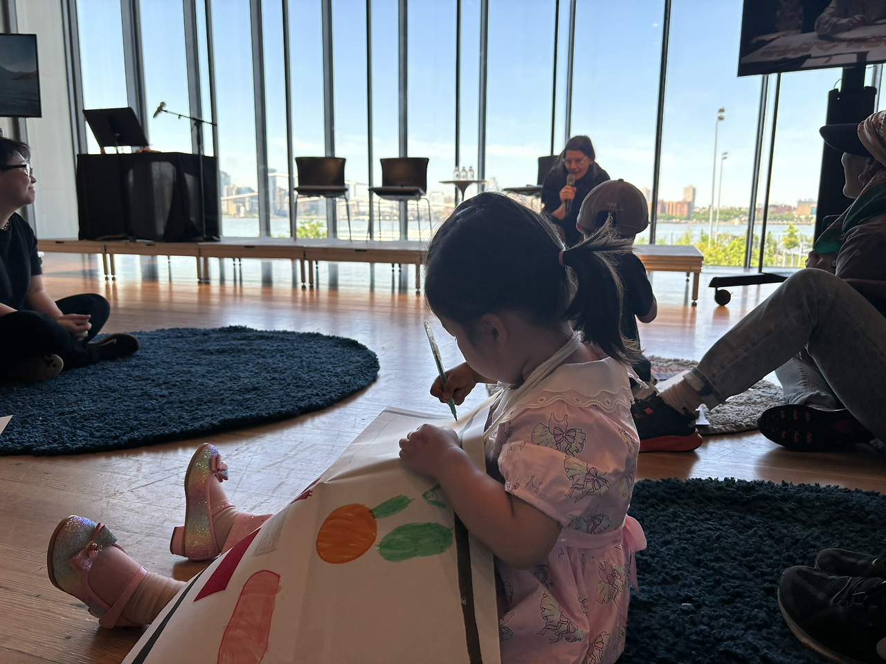 한 달에 두 번 정도 비정기적으로 토요일마다 어린이들 대상 아트 프로그램을 한다. 허드슨 강가가 환히 내려다 보이는 룸에서 해서 그냥 그 방에 있는 것만 해도 좋은데, 입장권만 있으면 무료 참여다. 여기 많은 어린이 프로그램들이 그렇지만. 매 프로그램마다 대상 아티스트가 바뀌고, 그 아티스트의 작품과 비슷한 콘셉트로 아트 프로젝트를 한다.