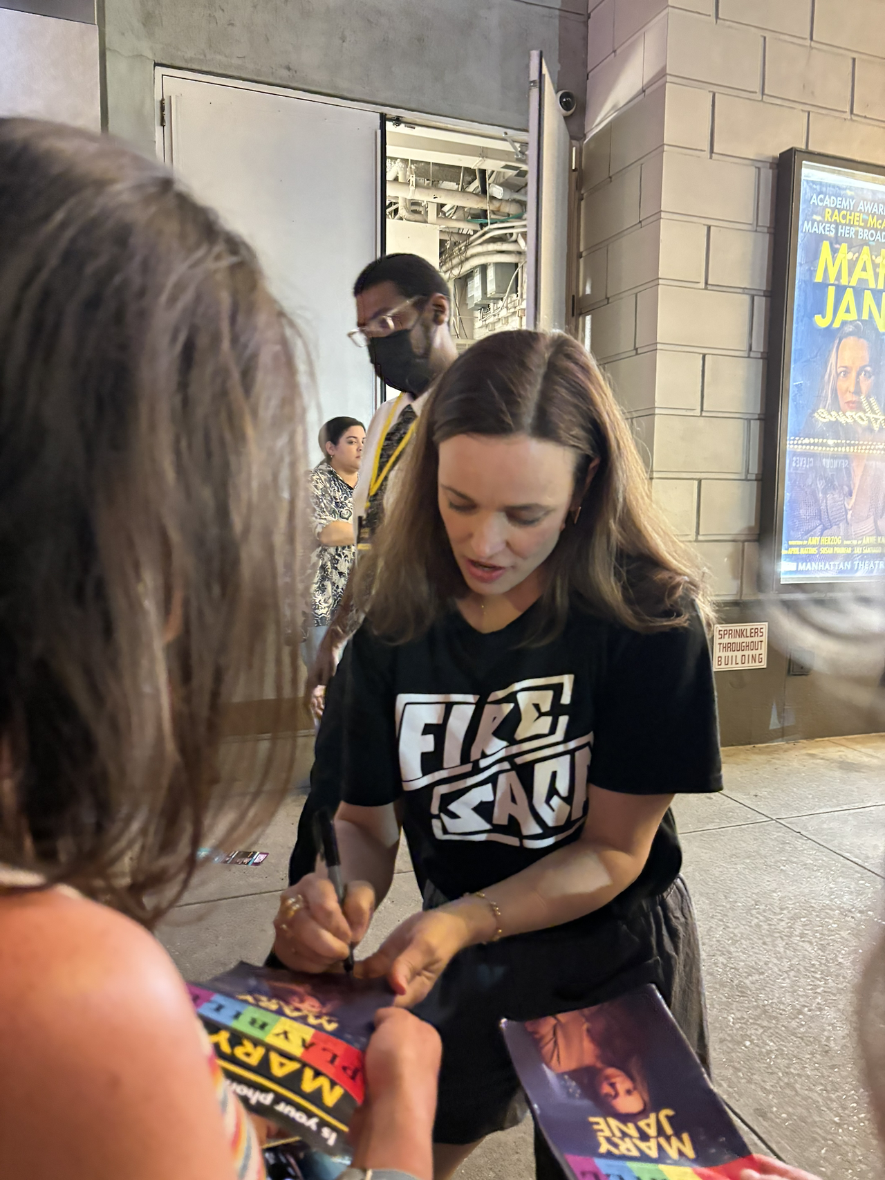 공연을 마치고 나오니, 사람들이 레이철 맥아담스의 퇴근을 기다리며 출입구에 서 있길래 나도 함께 기다려보았다. 경비원이 미리 나와서 ‘레이철을 모두 사인을 해줄 테니 절대 밀지 말고, 레이철의 시간을 너무 뺏지 말고 사인받거나 사진 찍으면 빠져 달라’라고 미리 부탁하는 걸 보고 ‘되게 친절한가 보다’라고 생각했는데 실제로 그랬다.